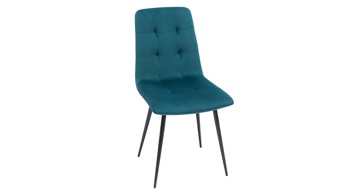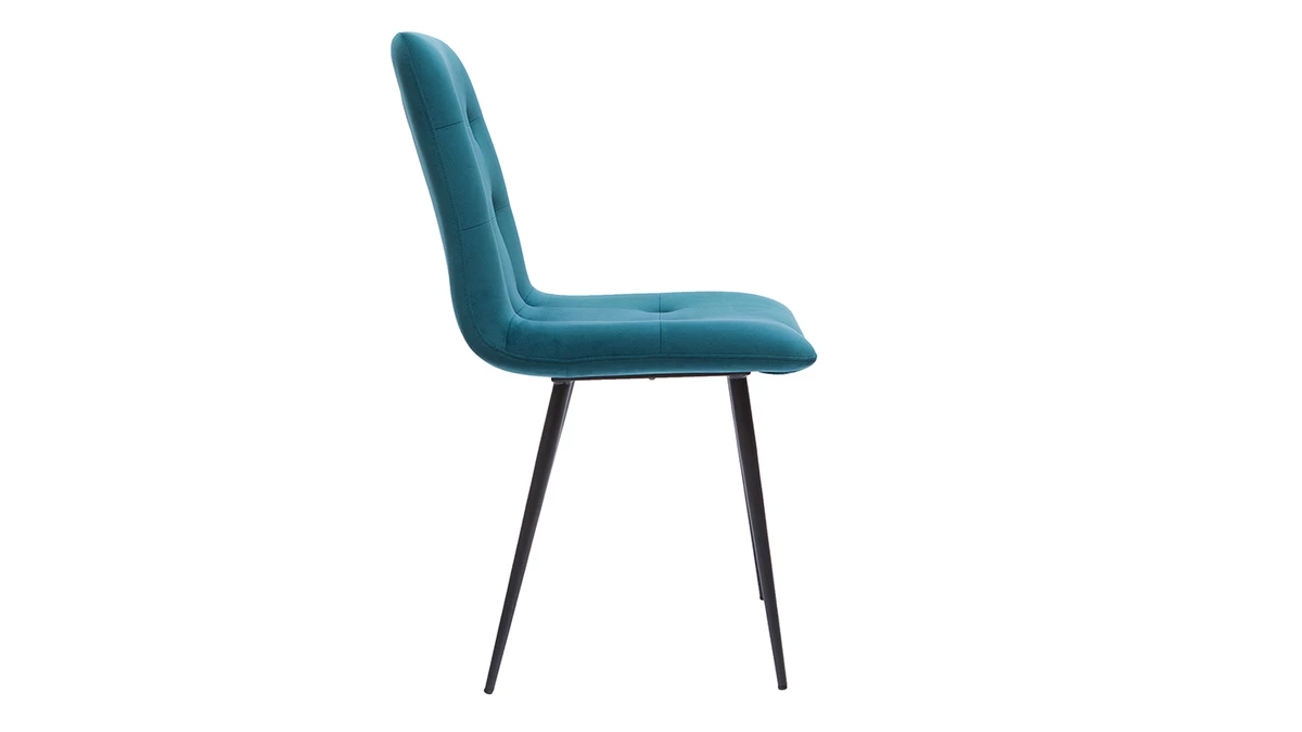 Pour une salle à manger au style affirmé, on accompagne ces chaises bleu pétrole et métal noir d’une table à manger contemporaine !