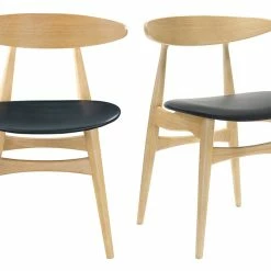 Disposées autour d’une table en bois, ces chaises en bois clair et assises noires apporteront à la fois de la lumière à votre salle à manger et une touche tendance grâce à l’originalité du contraste entre une structure et un piètement en hévéa massif et une assise habillée d’un revêtement en polyuréthane.