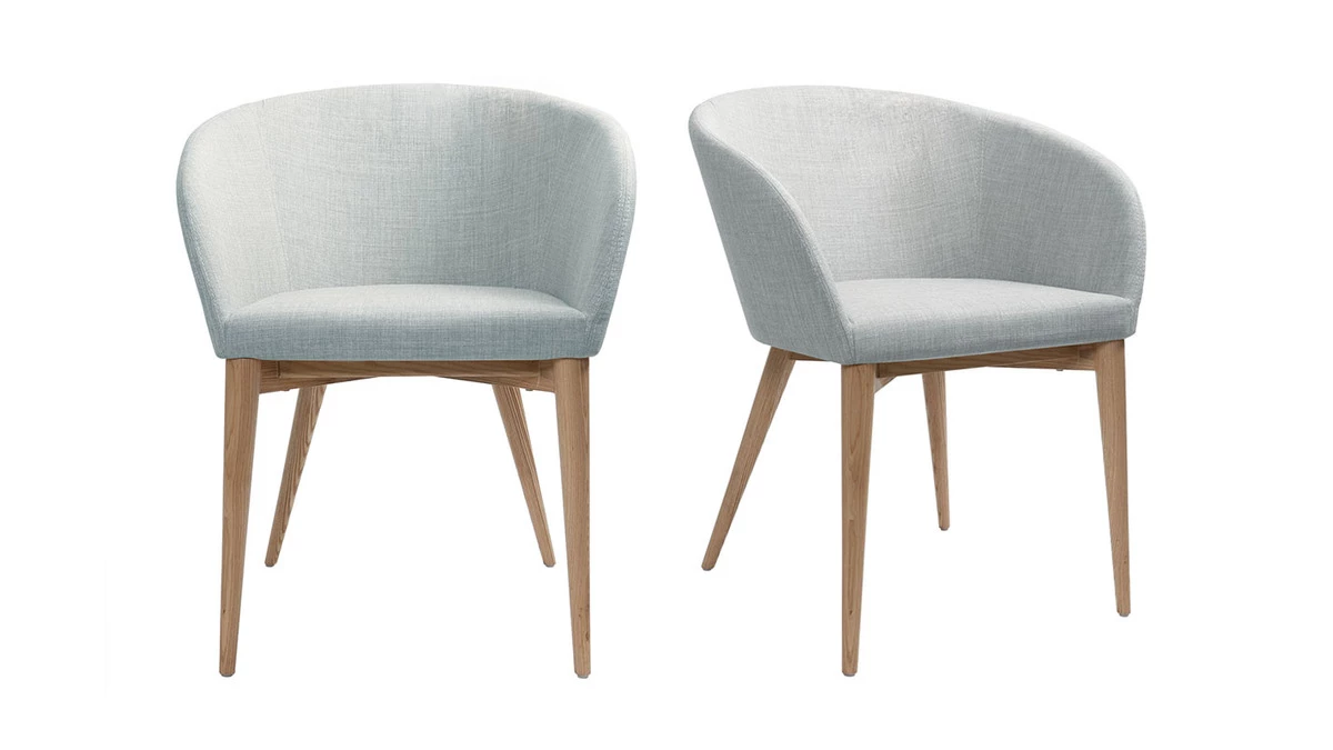 Supportés par un piètement en bois frêne massif, assises et dossiers rembourrés s’habillent d’un élégant tissu 100% polyester. Avec leur look à l’inspiration nordique, ces chaises scandinaves gris clair et bois, apporteront la touche douillette et chaleureuse attendue dans votre pièce de vie.