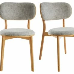 Avec leur délicate saveur vintage, ces chaises en tissu gris et bois clair s’intègrent tout naturellement dans les intérieurs en quête d’authenticité. On aime le contraste entre le charme rustique d’une structure en bois clair (placage frêne), avec ses noeuds, ses veines marquées ainsi que ses douces nuances dorées et la modernité d’un tissu gris (100% polyester).