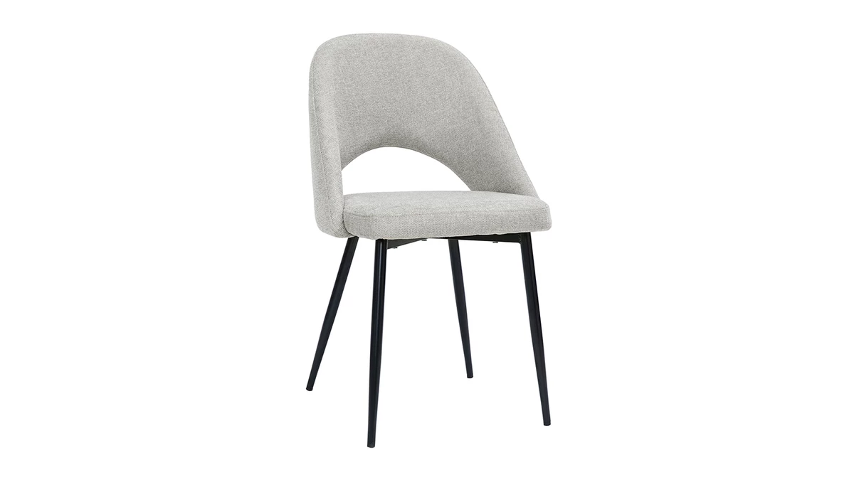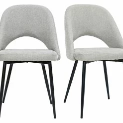 Ces assises au charme subtilement rétro sont synonymes de convivialité et de partage. Leur tissu effet velours texturé (100% polyester) se décline dans un coloris gris élégant et intemporel. Les pieds fuselés en métal noir apportent de la légèreté à la silhouette et s’accordent aisément avec tous les styles de tables à manger.