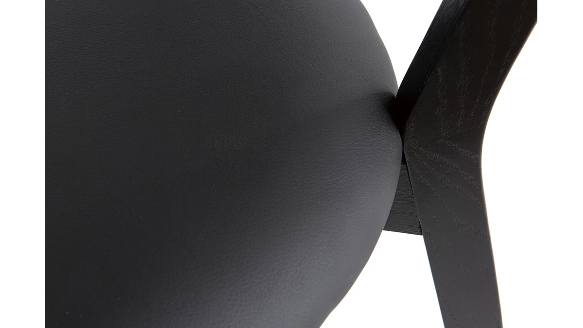 Fabriquées en contreplaqué chêne teinté noir, ces petites chaises aux dimensions L44 x P56 x H82 cm sont à la fois légères et robustes. Elles se déplacent en un clin d’oeil selon nos besoins et se nettoient très facilement à l’aide d’un chiffon doux légèrement humide. Leur dossier courbé et leur assise rembourrée (densité de la mousse 35 Kg/m3) garantissent un confort durable au quotidien. L’assise est habillée d’un revêtement noir (100% polyuréthane) qui se marie à merveille avec le bois noir. Le vernis transparent apposé sur le chêne plaqué nourrit et protège le bois.