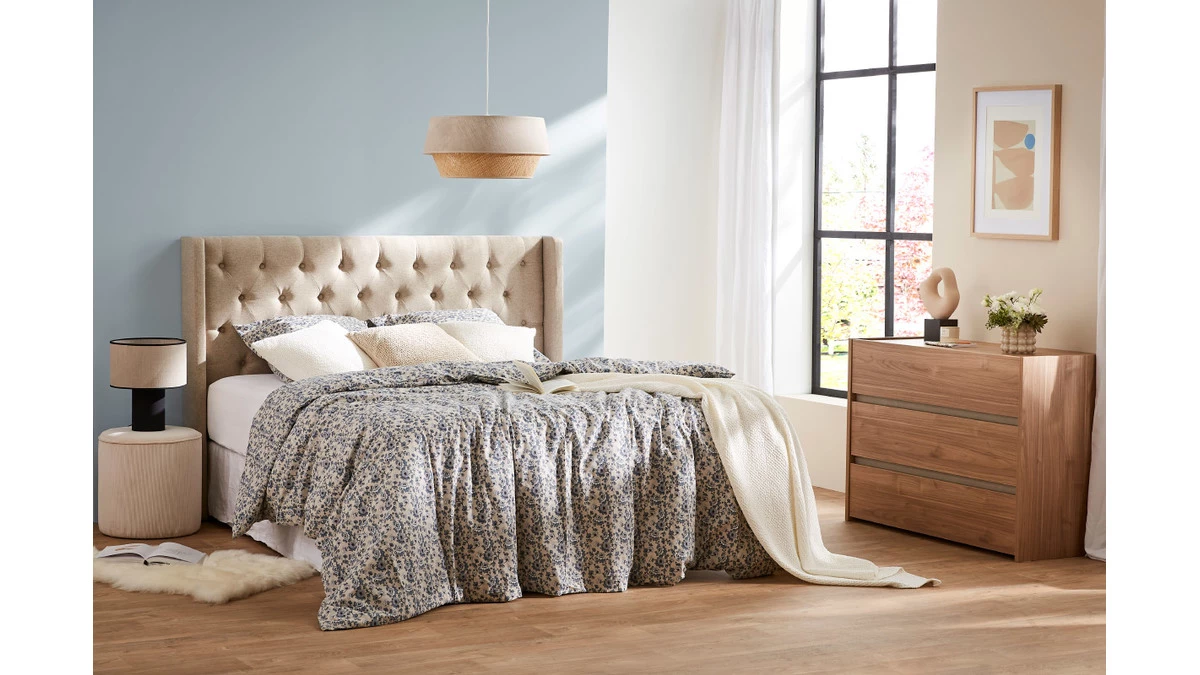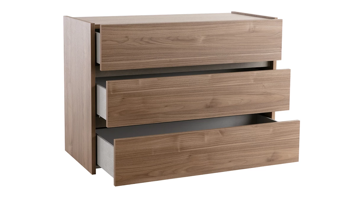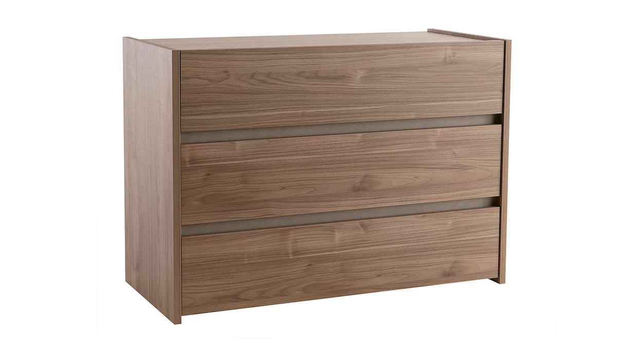 Ode à la fonctionnalité ! équipée de trois grands tiroirs (L102.4 x P38.8 x H14 cm) afin de ranger facilement linges de maison et vêtements, cette commode à tiroirs – peu encombrante avec ses dimensions L111 x P50 x H79 cm – sera un allié de taille pour garder l’espace nuit d’une chambre à coucher bien organisé. Afin de personnaliser votre intérieur, profitez de son plateau pour y installer différents éléments décoratifs comme un cadre, un miroir, une plante ou encore une élégante lampe à poser.