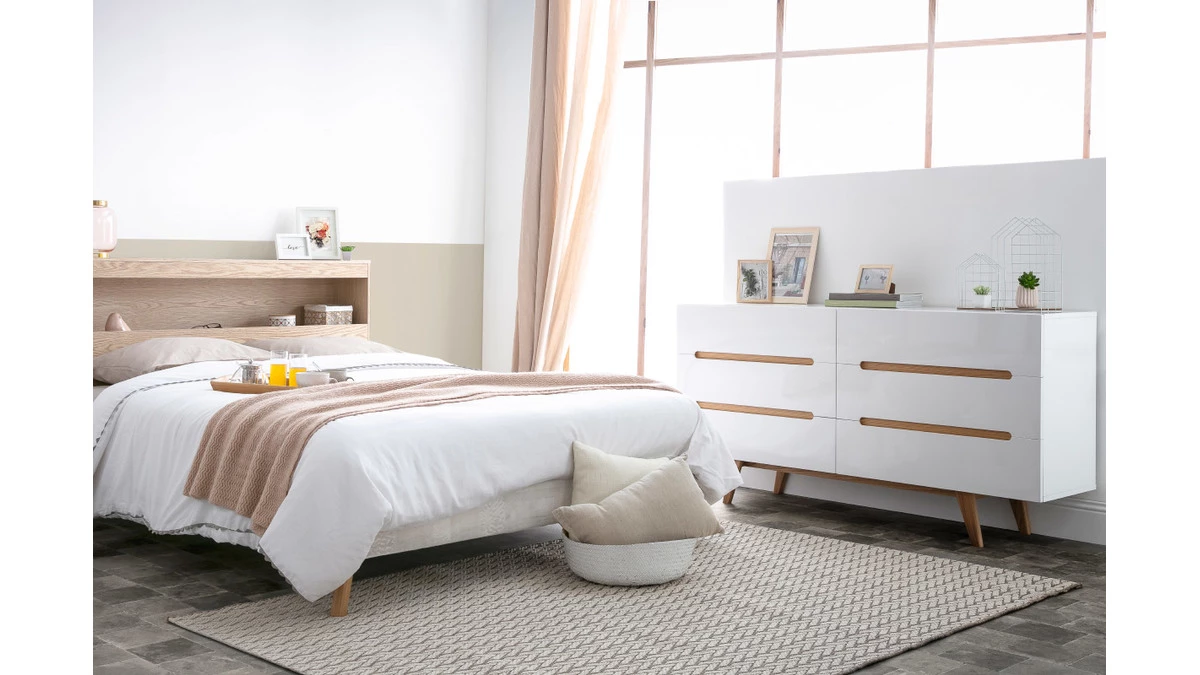 Dans une chambre à coucher, cette commode à tiroirs d’une élégante simplicité prendra ses marques avec style ! Pour composer une déco d’intérieur aussi design que chaleureuse, on l’imagine associée à des tables de chevet blanches ou bois clair. De quoi parfaire une douce harmonie dans l’espace nuit…
