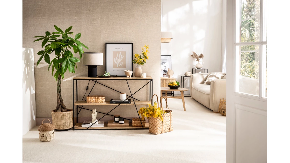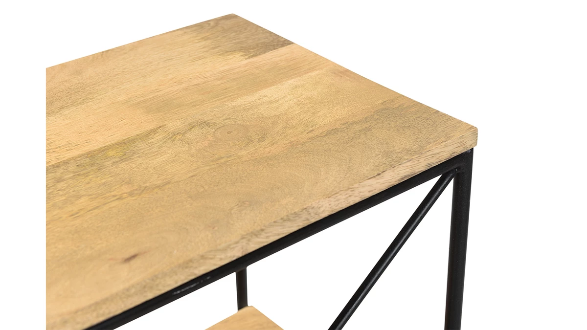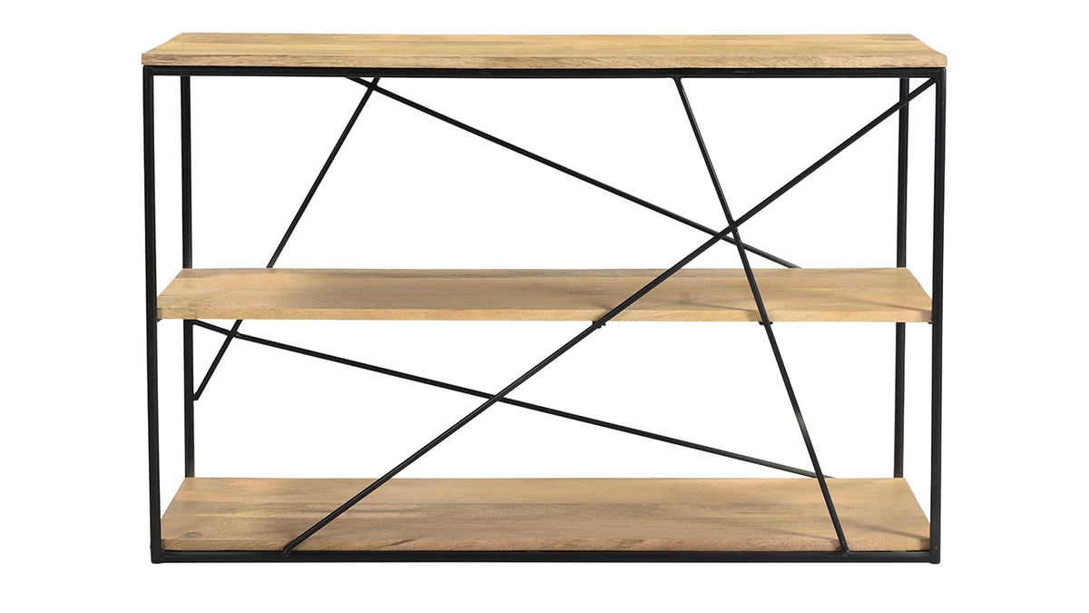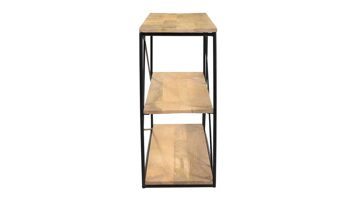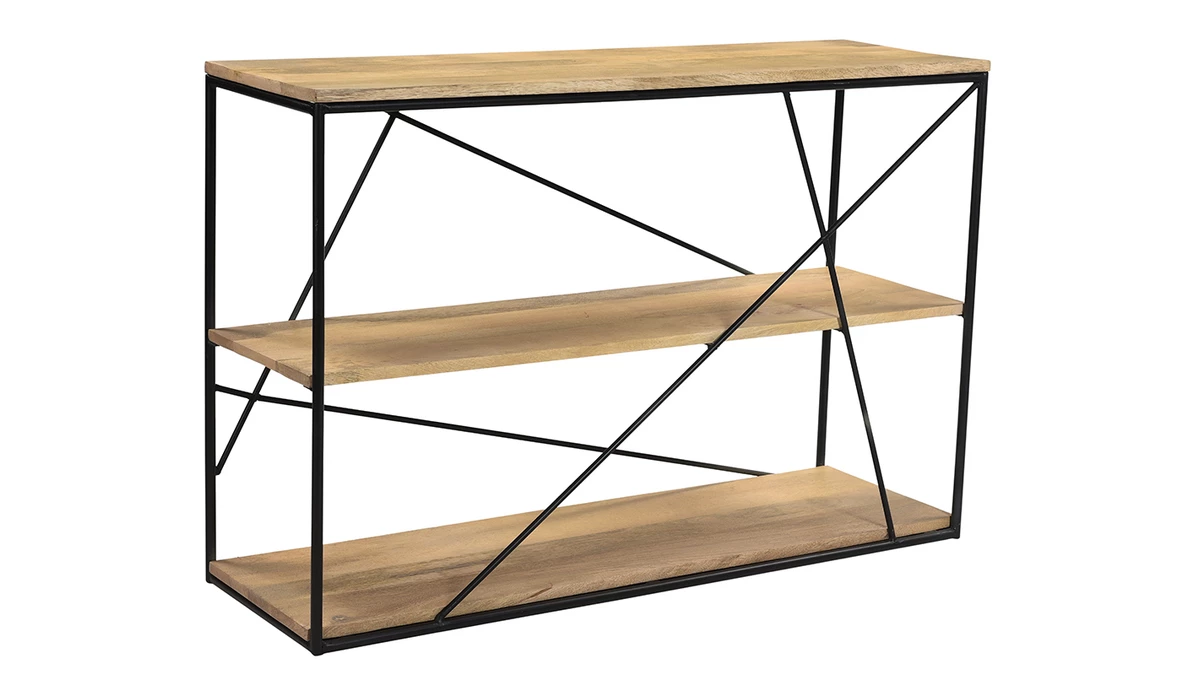 Grâce à la chaleur du manguier et ses nervures singulières, cette console apporte instantanément une touche naturelle et authentique dans un intérieur. Le bois étant une matière incontournable, ce meuble se fond en toute simplicité avec le reste de la déco. L’association avec le métal noir en fait un meuble au style industriel, en plein dans la tendance actuelle. On aime les détails métalliques qui s’entrecroisent et rendent le design de cette console vraiment unique !