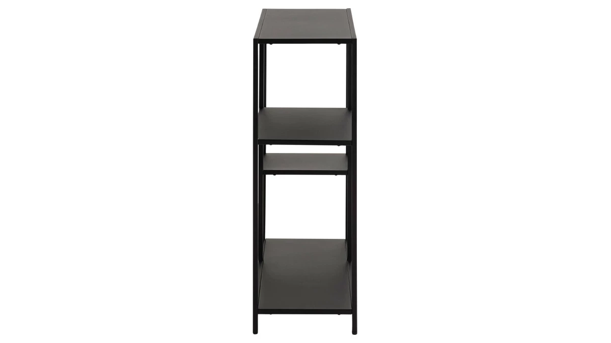 Si cette petite console attirera tous les regards dans une entrée bien agencée, elle pourra, grâce à ses dimensions L80 x P30 x H86 cm, se glisser facilement dans toutes les pièces de la maison. Les différents formats d’étagères permettent de profiter d’espaces de rangement adaptés aux besoins : disposer une boîte, ranger des livres, placer un vase, déposer une paire de chaussures et utiliser le plateau supérieur pour mettre en valeur une lampe à poser… à chaque objets déco ou du quotidien sa place !