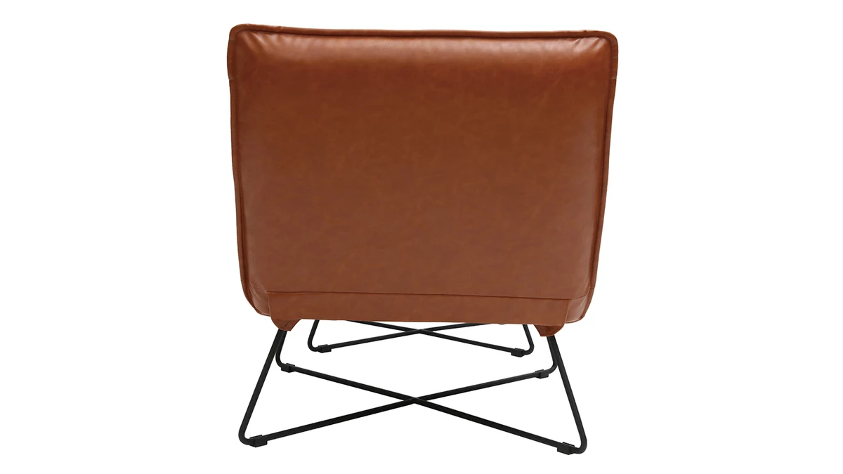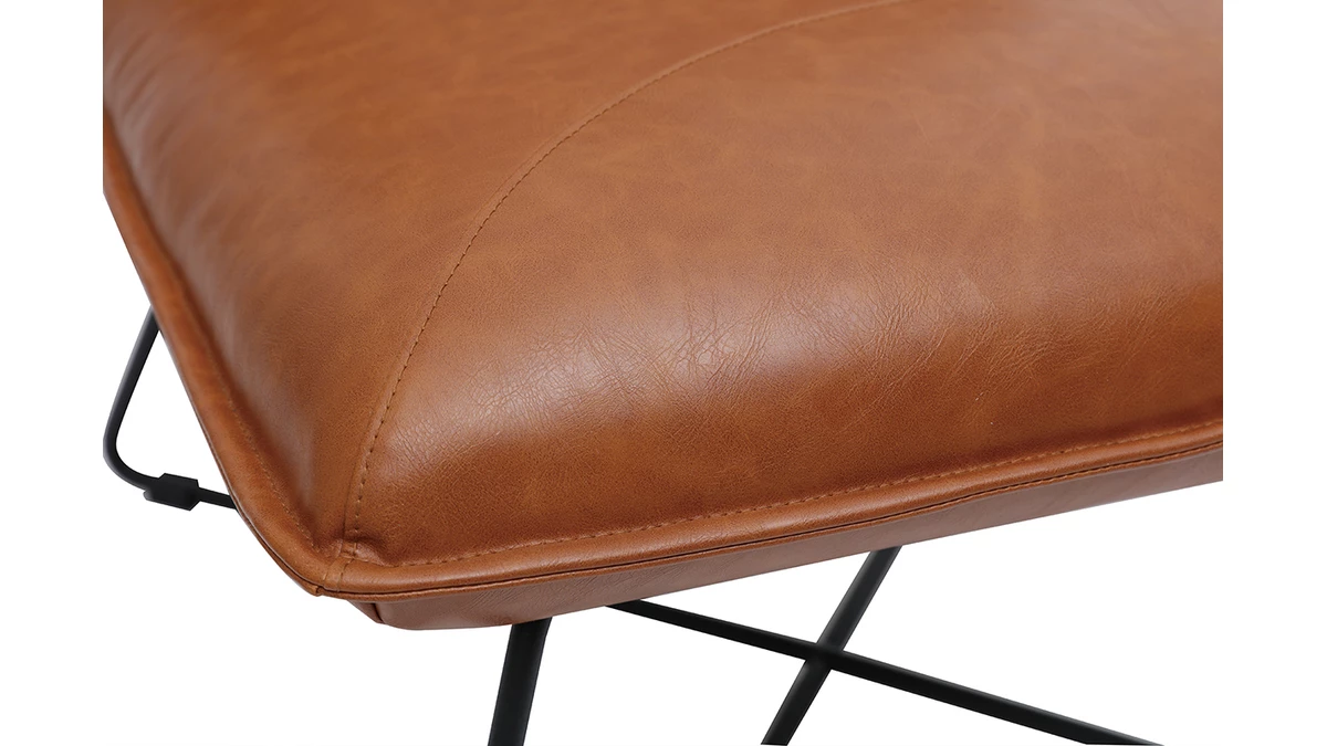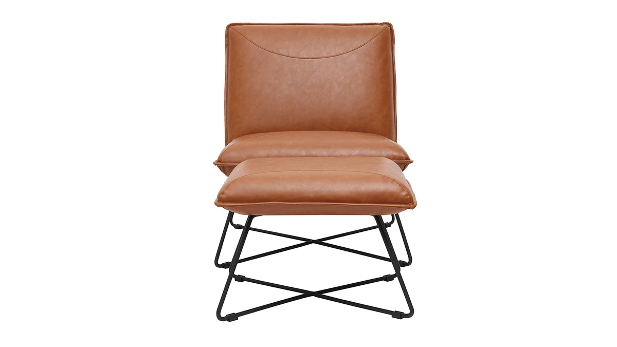Revêtu de polyuréthane marron, le fauteuil et son repose pied PHILO apporteront chaleur et personnalité à votre intérieur. Son piètement métallique fin en étoile lui assure une bonne stabilité et souligne les lignes fines de cette pièce de mobilier.