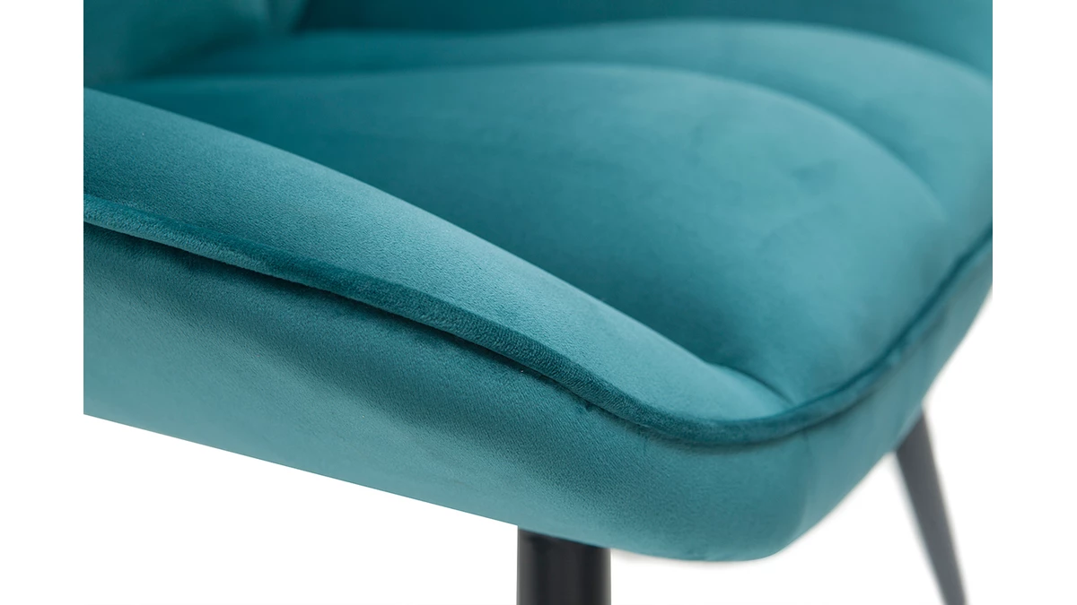 On aime les courbes douces, le piètement fuselé et le revêtement en velours de ce fauteuil bleu pétrole. Cette association lui donne du charme et un style unique tout en élégance et en délicatesse. Jolie pièce design, le fauteuil BILLIE offre confort et convivialité. Sa teinte intemporelle associée à une forme enveloppante trouvera facilement sa place dans un salon cocooning. Un piètement en métal noir complète le tout. Il apporte une belle touche de légèreté à une assise au volume massif. Un bel équilibre qui fait tout le charme de ce fauteuil design.