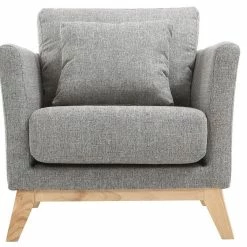 Sa forme épurée et sobre en fait une assise indémodable. Revêtu d’un joli tissu gris clair, ce fauteuil intégrera facilement un salon nordique comme une pièce à vivre moderne et minimaliste. Le bois de chêne utilisé pour son piètement apporte une touche chaleureuse à l’ensemble. Le mariage entre tissu et bois offre un rendu naturel et plein de charme qui traversera les années sans se démoder.