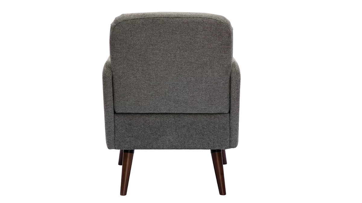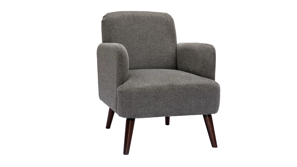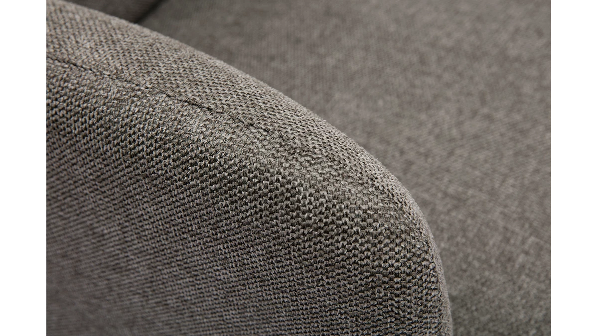 Avec ses lignes arrondies, son design épuré et sa jolie combinaison de matières, ce fauteuil possède tout ce qui fait le charme des meubles scandinaves. Le piètement en hévéa massif teinté noyer et le tissu effet velours texturé gris de l’assise en font une pièce indémodable et facile à intégrer dans différents styles de séjour.