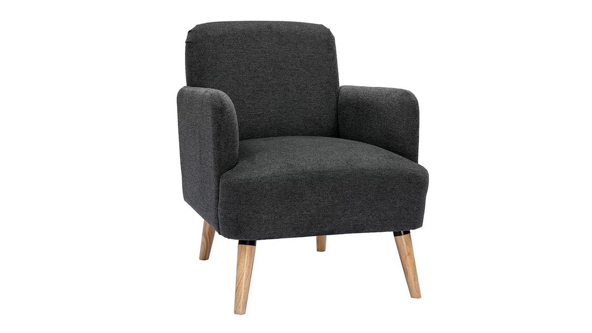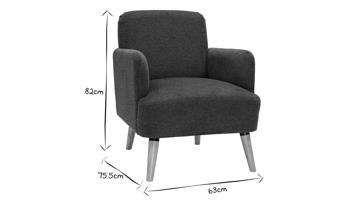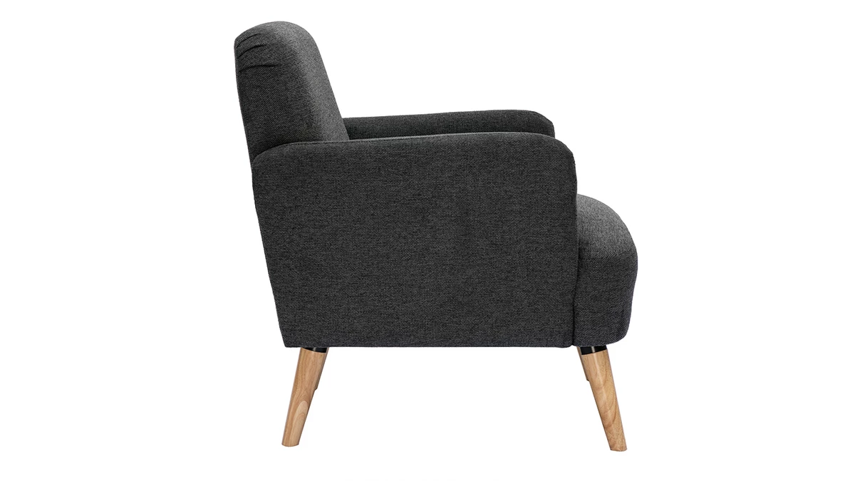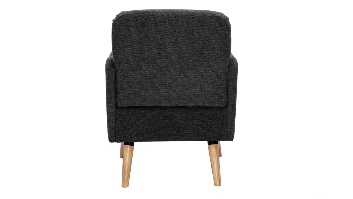 Avec ses lignes arrondies, son design épuré et sa jolie combinaison de matières, ce fauteuil possède tout ce qui fait le charme des meubles scandinaves. Le piètement en hévéa massif et le tissu effet velours texturé gris foncé de l’assise en font une pièce indémodable et facile à intégrer dans différents styles de séjour.