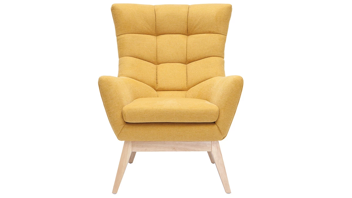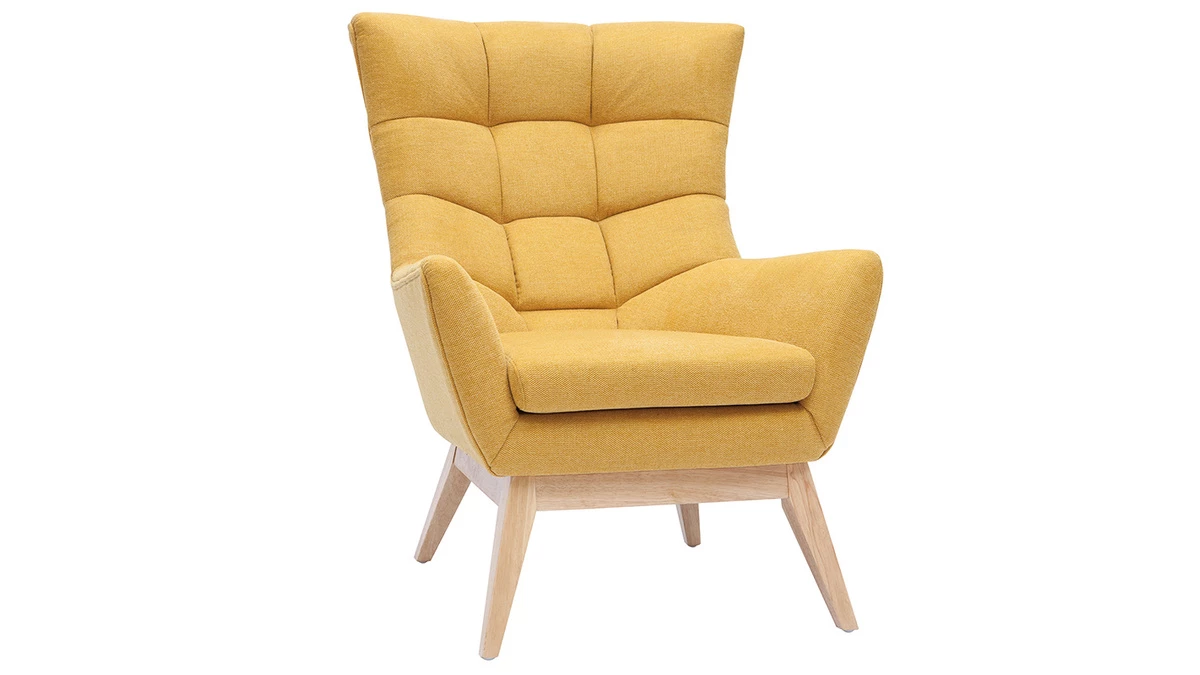 Ce fauteuil associe un revêtement en polyester effet velours présentant un effet texturé du plus bel effet à un piètement en bouleau massif ultra solide.