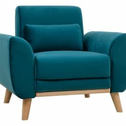 On dispose ce fauteuil dans le séjour aux côtés d’un canapé scandinave pour s’aménager un intérieur cosy.