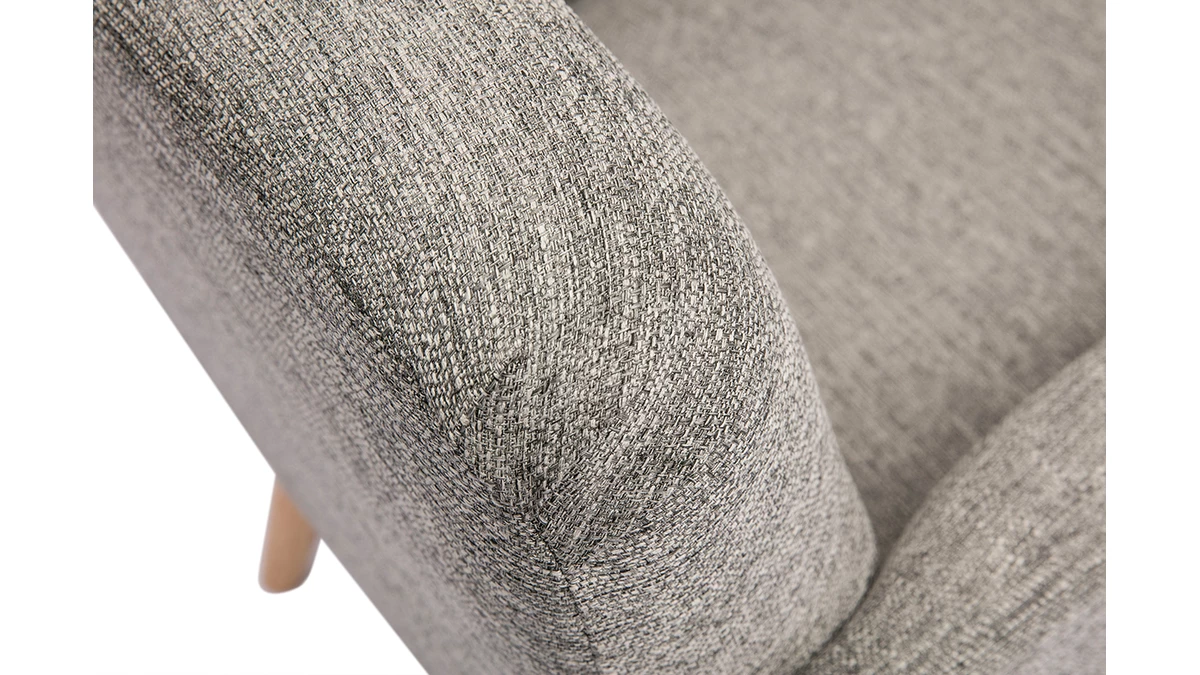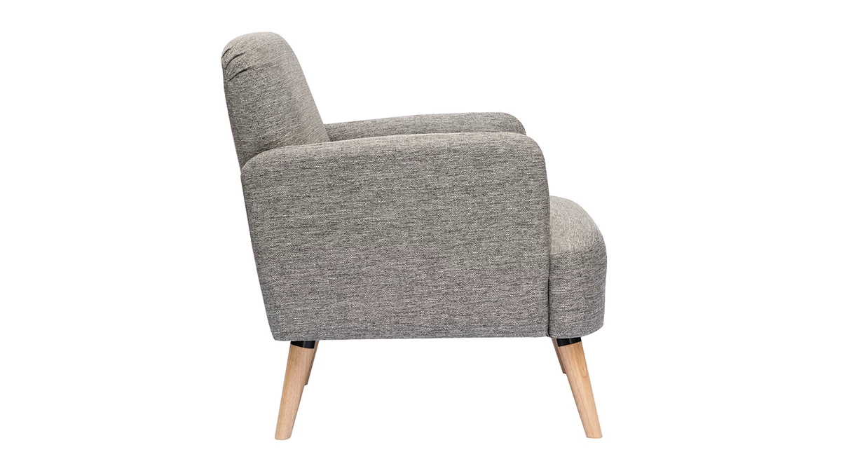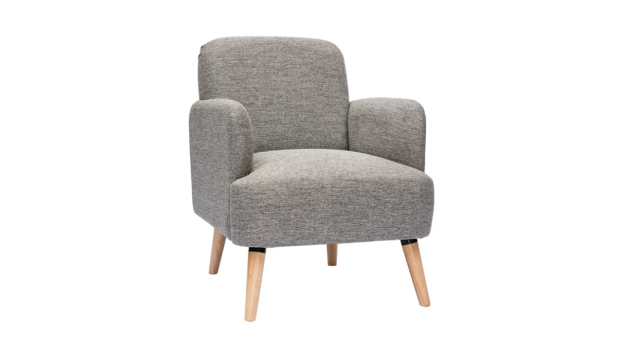 Avec ses lignes arrondies, son design épuré et sa jolie combinaison de matières, ce fauteuil possède tout ce qui fait le charme des meubles scandinaves. Le piètement en hévéa massif et le tissu 100% polyester coloris gris clair de l’assise en font une pièce indémodable et facile à intégrer dans différents styles de séjour.