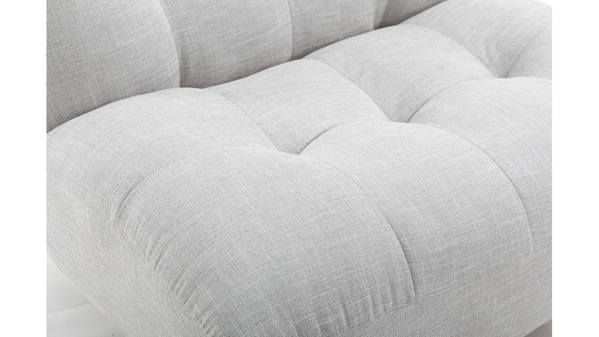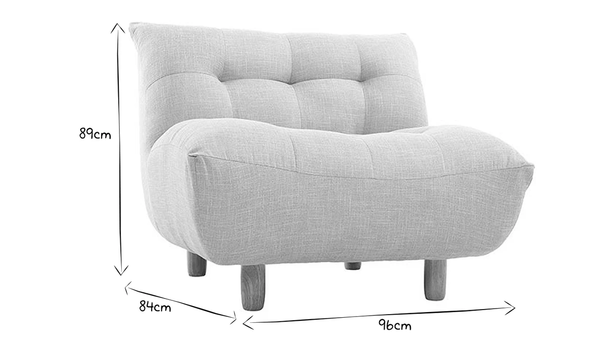 Le fauteuil scandinave YUMI propose une assise de 96 cm de largeur sur 84 de profondeur, soit plus grand que les fauteuils traditionnels. Un bon compromis pour les petits espaces ne pouvant accueillir de canapé.