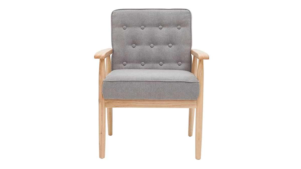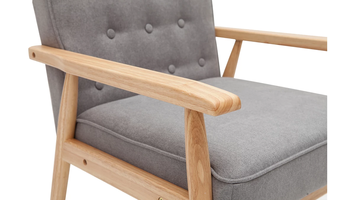 Ce fauteuil est une pièce intemporelle aux tonalités douces et sobres. Ses coussins moelleux et accueillants (densité de la mousse 28 kg/m3) prennent place au coeur d’une structure en bois naturel d’une grande finesse (hévéa massif).