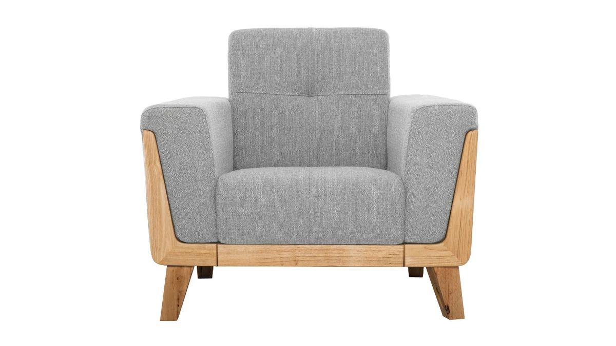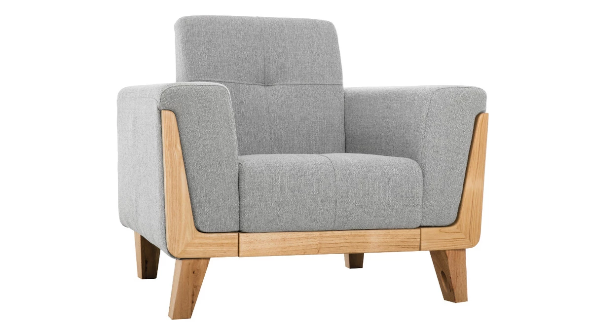Une véritable invitation au bien être, voilà ce que vous propose ce fauteuil FJORD. Avec sa structure en bois qui enveloppe même les accoudoirs et son revêtement en tissu polyester gris, ce fauteuil revendique le style nordique parfaitement.