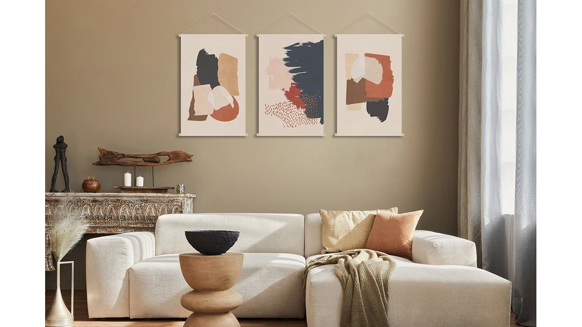 Pleinement inscrit dans la mouvance actuelle, ce kakemono se pare de belles teintes minérales comme le brun, le beige, ou encore le terracotta.