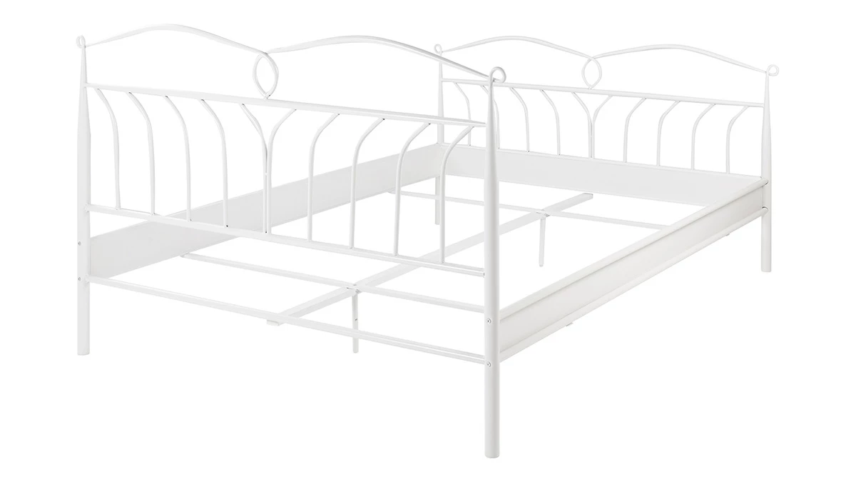 Grâce à sa structure métallique, ce lit double est une pièce robuste. Ses dimensions en font un lit parfait pour les petites chambres d’adulte. Associé à un confortable matelas 140 x 200 cm (vendu séparément) il formera un accueillant couchage pour deux personnes.