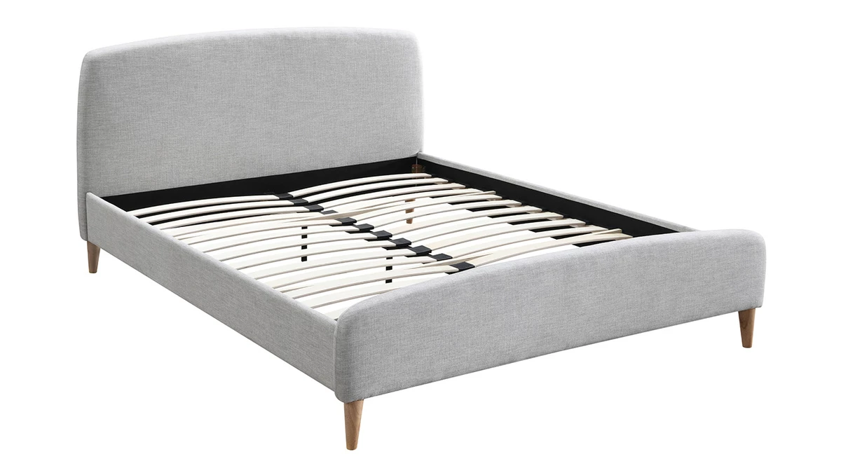 Parfaitement dessiné, ce lit queen size tire son inspiration des pays nordiques. Ses courbes légères et aérées offrent un design unique très subtil. Ce lit gris clair au revêtement tissu (100% polyester) se fondra parfaitement dans le décor d’une chambre avec une décoration plutôt classique, scandinave ou contemporaine. Ses lignes arrondies lui donnent un style tout en douceur et son piètement en hévéa massif un aspect chaleureux. Confortable et joli, ce lit double trouvera sa place dans une chambre d’adulte et scellera la promesse de nuits paisibles et enchantées…