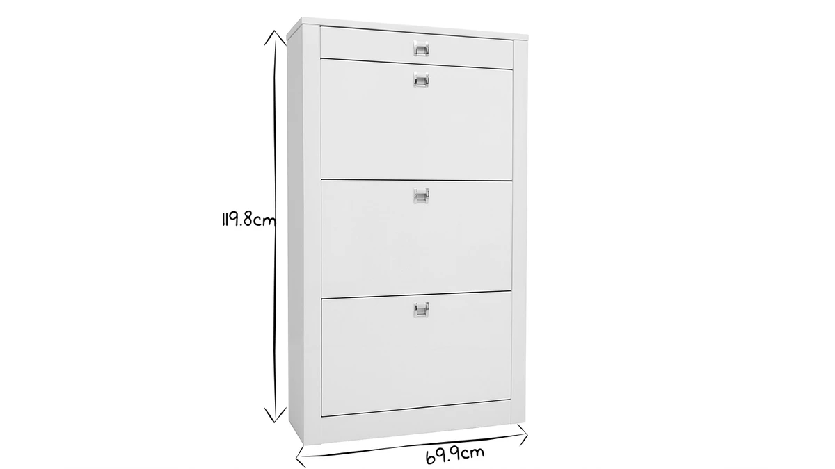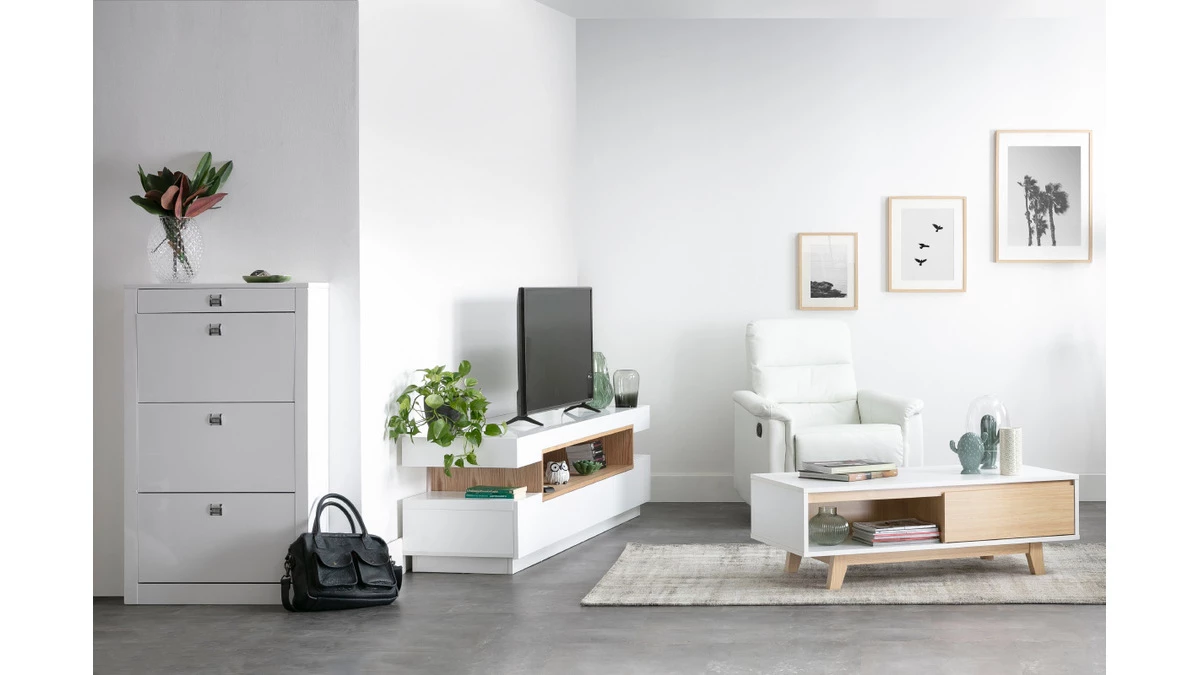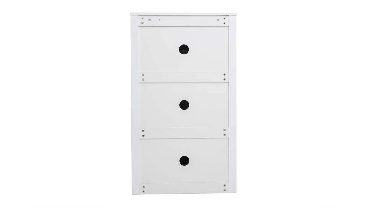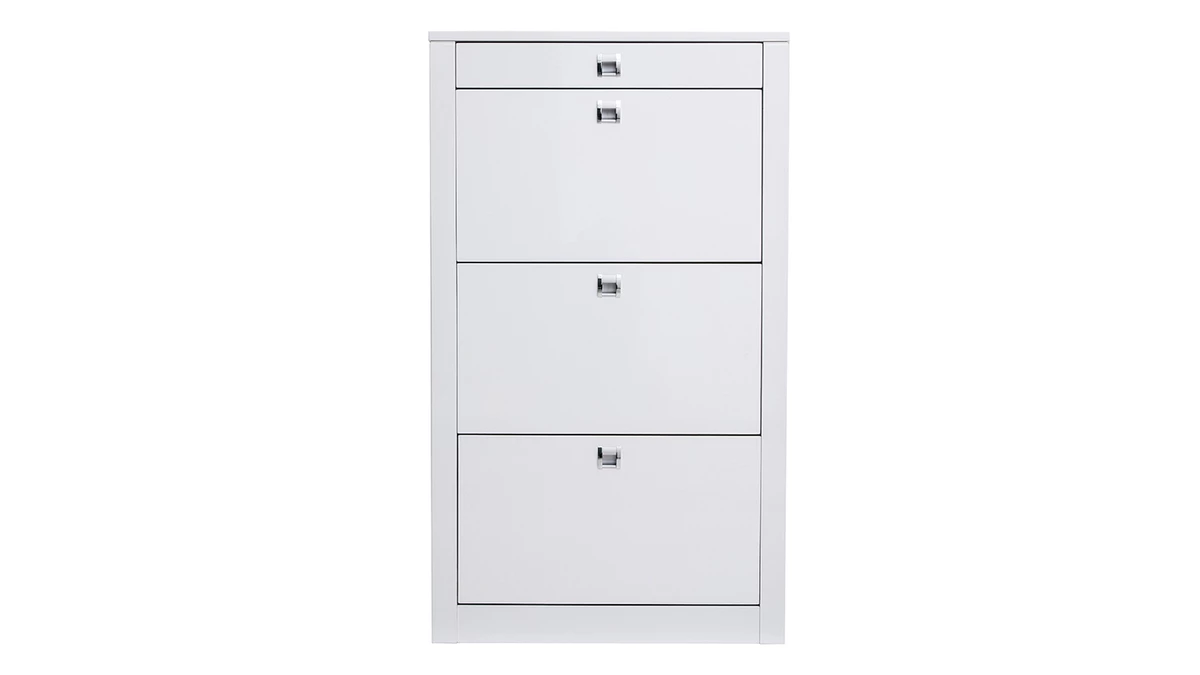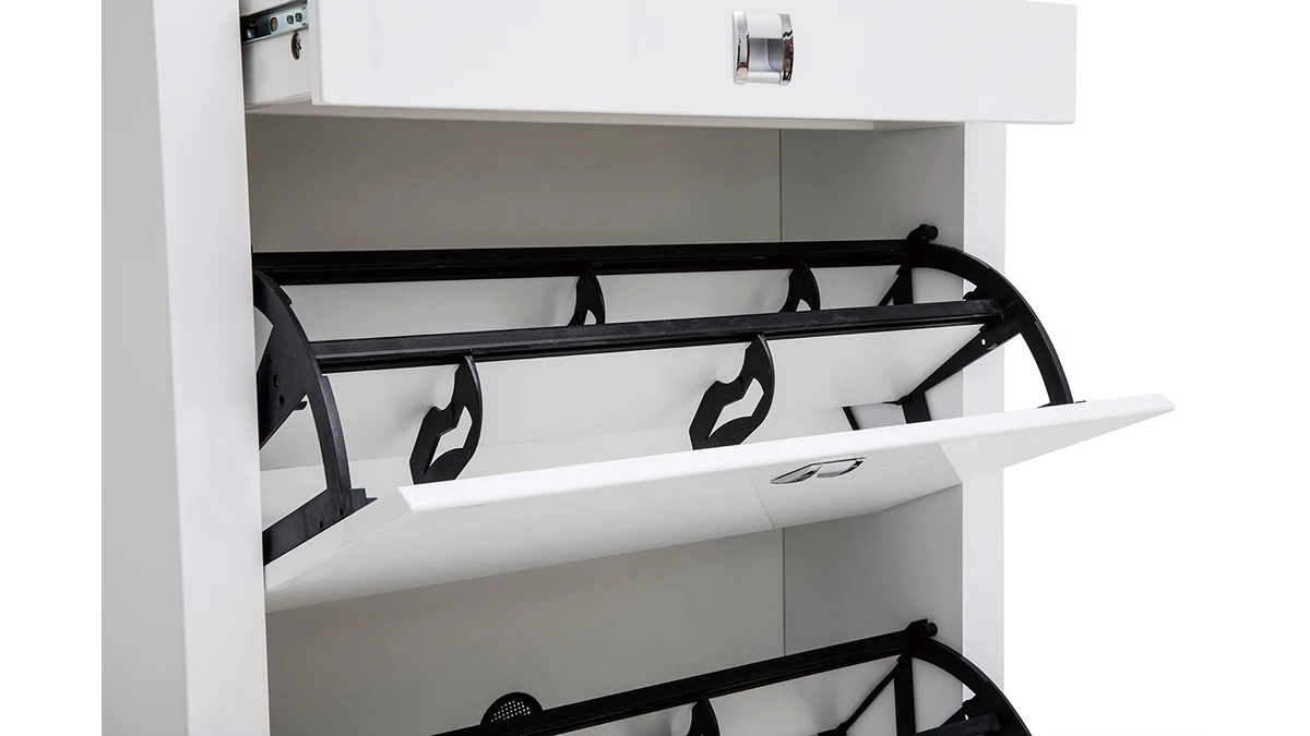 Vous êtes à la recherche d’un meuble à chaussures design et pratique ? Le modèle DEVA est fait pour vous ! En panneaux de fibres de bois laqué, très simple d’entretien, il vous permet d’optimiser votre rangement en un clin d’oeil. Le meuble à chaussures DEVA est doté de 3 espaces de rangement pouvant chacun accueillir 6 paires de chaussures. Il possède également un tiroir qui servira aisément de vide-poche.