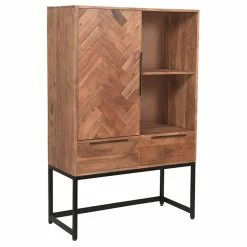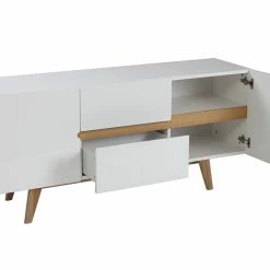 Buffet Japandi En Bois Clair Chêne Et Gris Foncé 2 Portes Coulissantes 2 Tiroirs L120 Cm JAPANSK