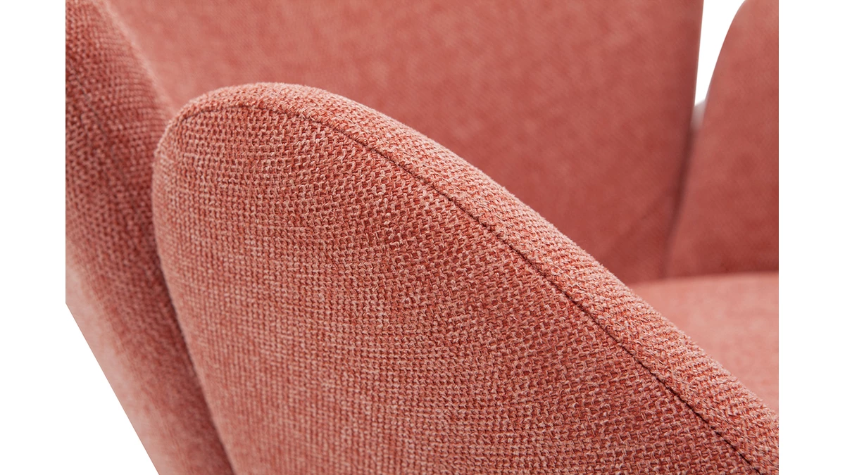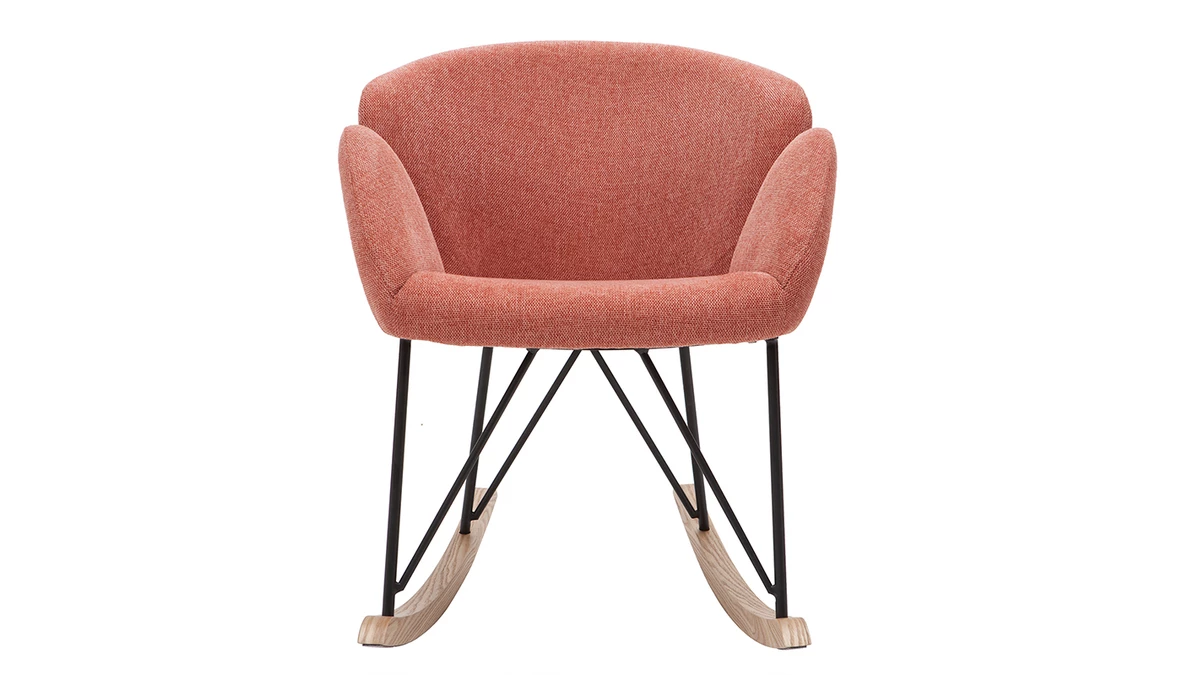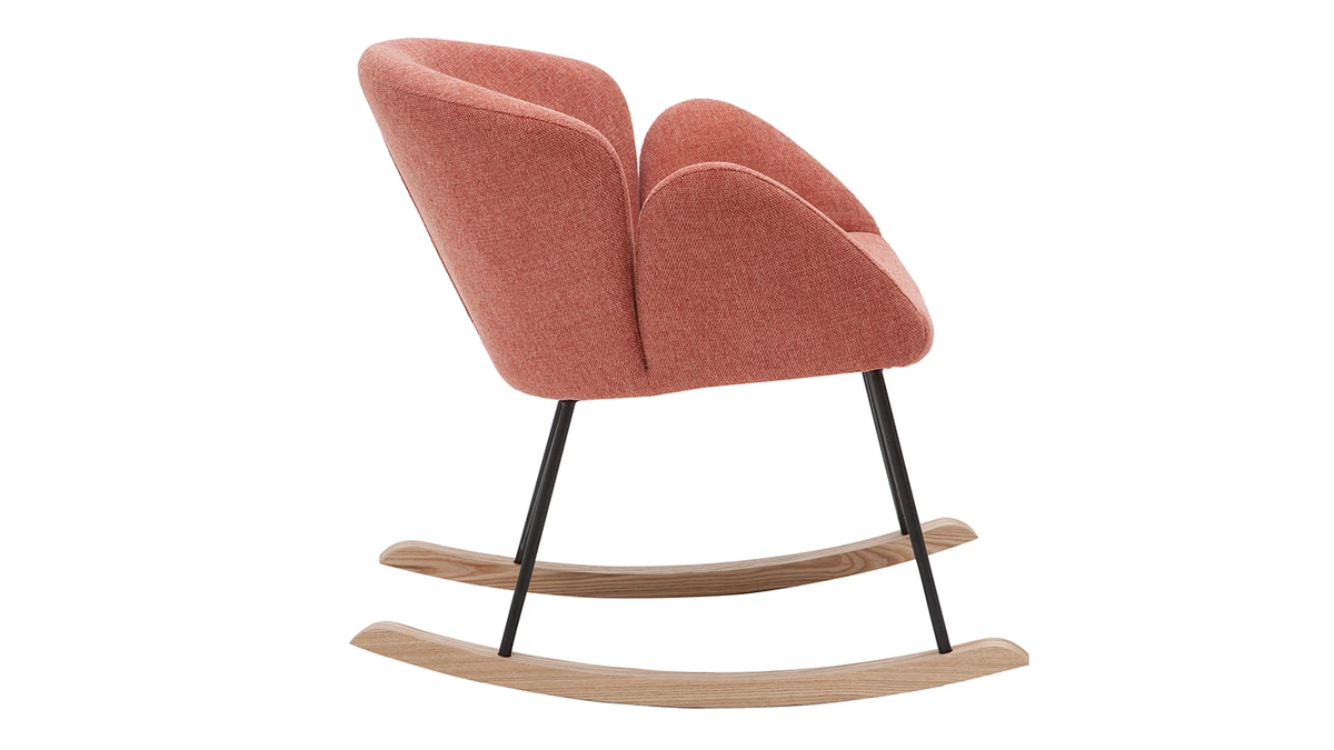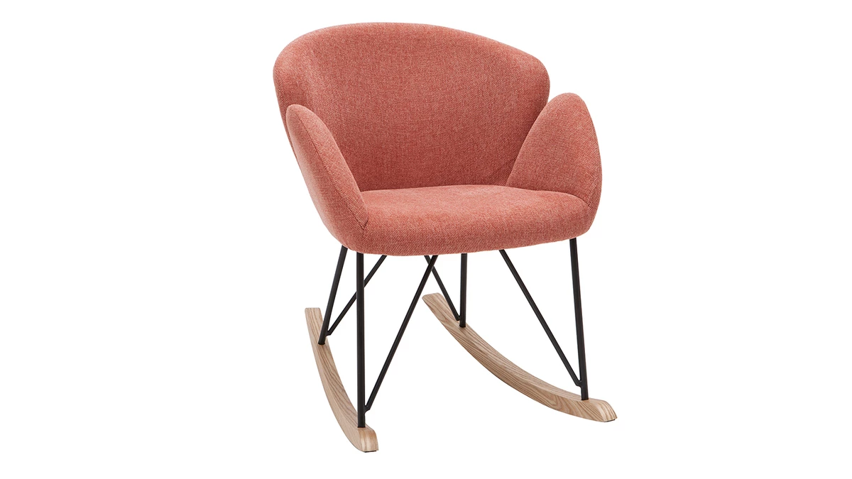 Son revêtement en polyester texturé effet velours terracotta confère à ce rocking chair RHAPSODY une élégance qu’on adore, tout à fait dans l’air du temps. Son piètement constitué de bois et de métal en fait un fauteuil à mi-chemin entre un esprit nordique et un style contemporain.