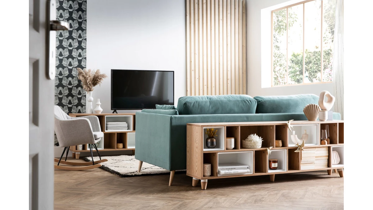 Inspiré du mobilier scandinave, ce fauteuil rocking chair ALEYNA possède un dossier qui vous maintiendra parfaitement le dos et une assise confortable. Accompagné d’une petite table d’appoint, il sera idéal pour passer un hiver au coin du feu ou tout simplement un moment cocooning chez soi. Son piètement en bois et métal rappelle également le style scandi-nordique. Pour rendre ce fauteuil encore plus cosy, n’hésitez pas à accumuler de gros coussins ou des plaids.