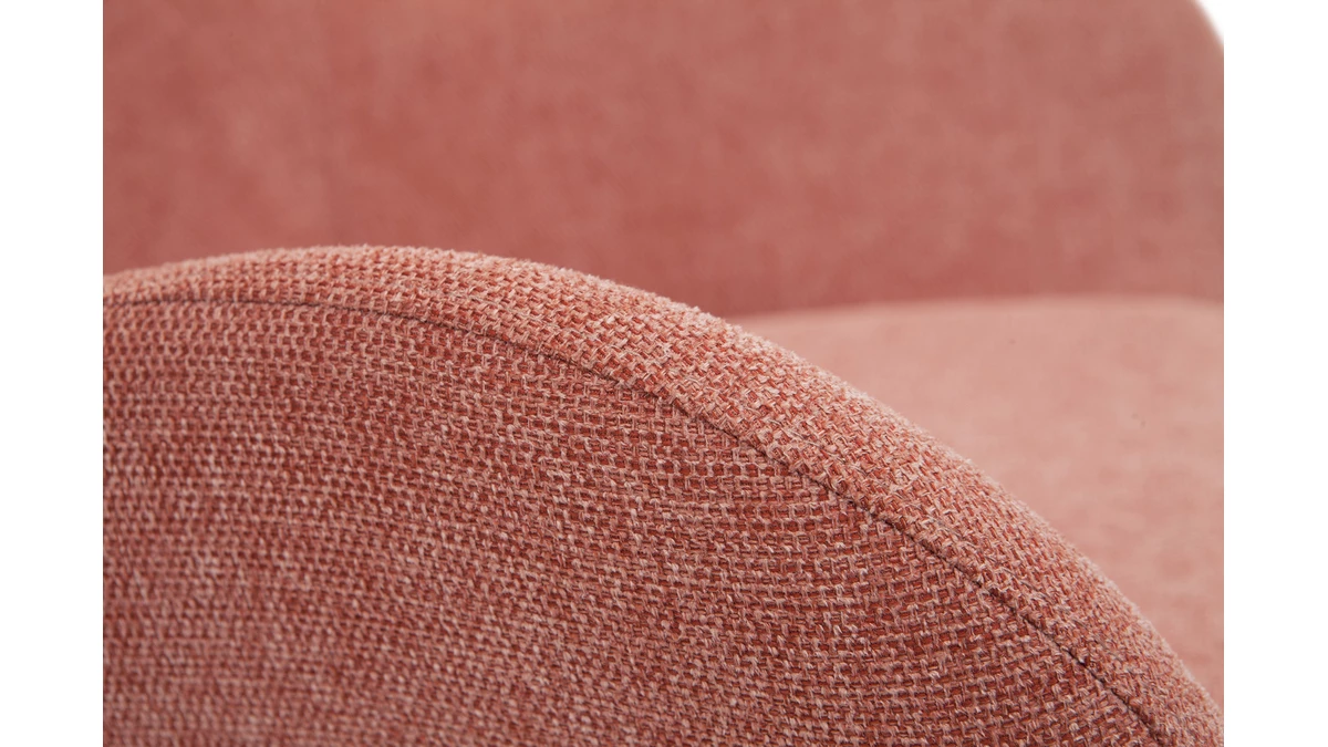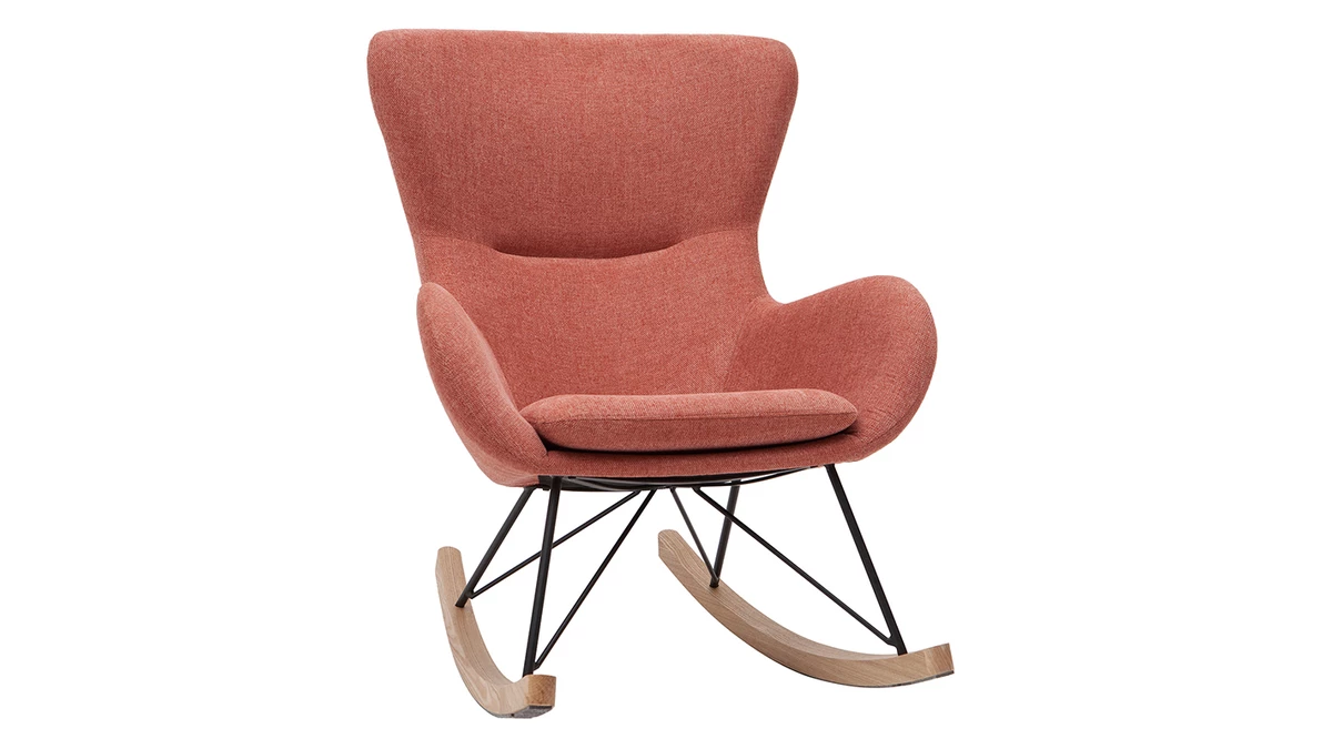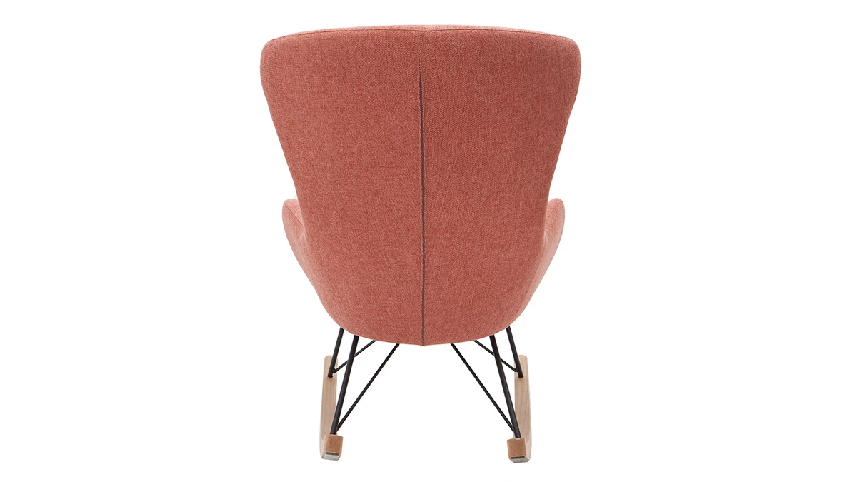 Revêtue de tissu effet velours texturé couleur terracotta, cette assise élégante arbore une teinte tendance. La chaleur du coloris associée au piètement en bois et métal en fait un élément dans l’air du temps et facile à adopter chez soi. Retrouvez dans le modèle ESKUA, le petit balancement propre aux fauteuils à bascule. Grâce à cet incontournable de la relaxation, à vous les moments détente !