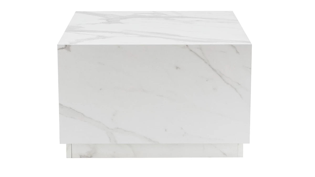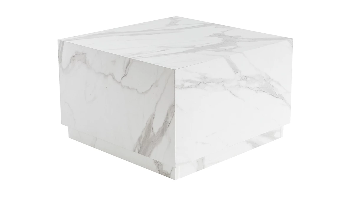 Cette table design est un cube dans sa forme la plus pure. Son design épuré et compact s’intègre avec élégance dans les intérieurs contemporains. Fabriquée en Italie et réalisée en bois aggloméré décoré d’un bel effet marbre blanc, cette table basse à la géométrie parfaite est un objet déco à part entière dans lequel on retrouve tout le savoir-faire italien. Elle associe une ligne simple et épurée à une finition mate moderne pour un salon chic et tendance.