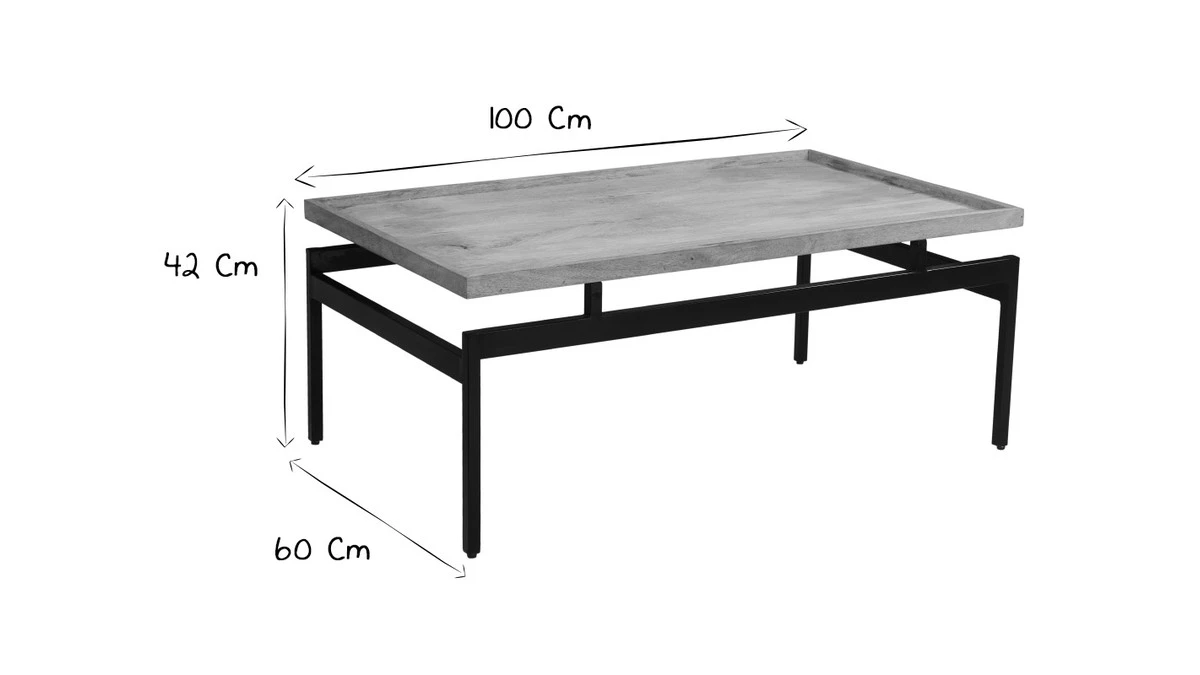 Avec ses dimensions généreuses (L100 x P60 cm), cette table basse en bois massif permet d’aménager un bel espace convivial autour du canapé.