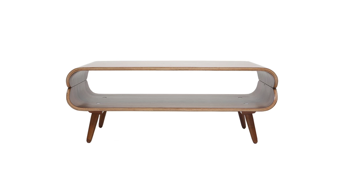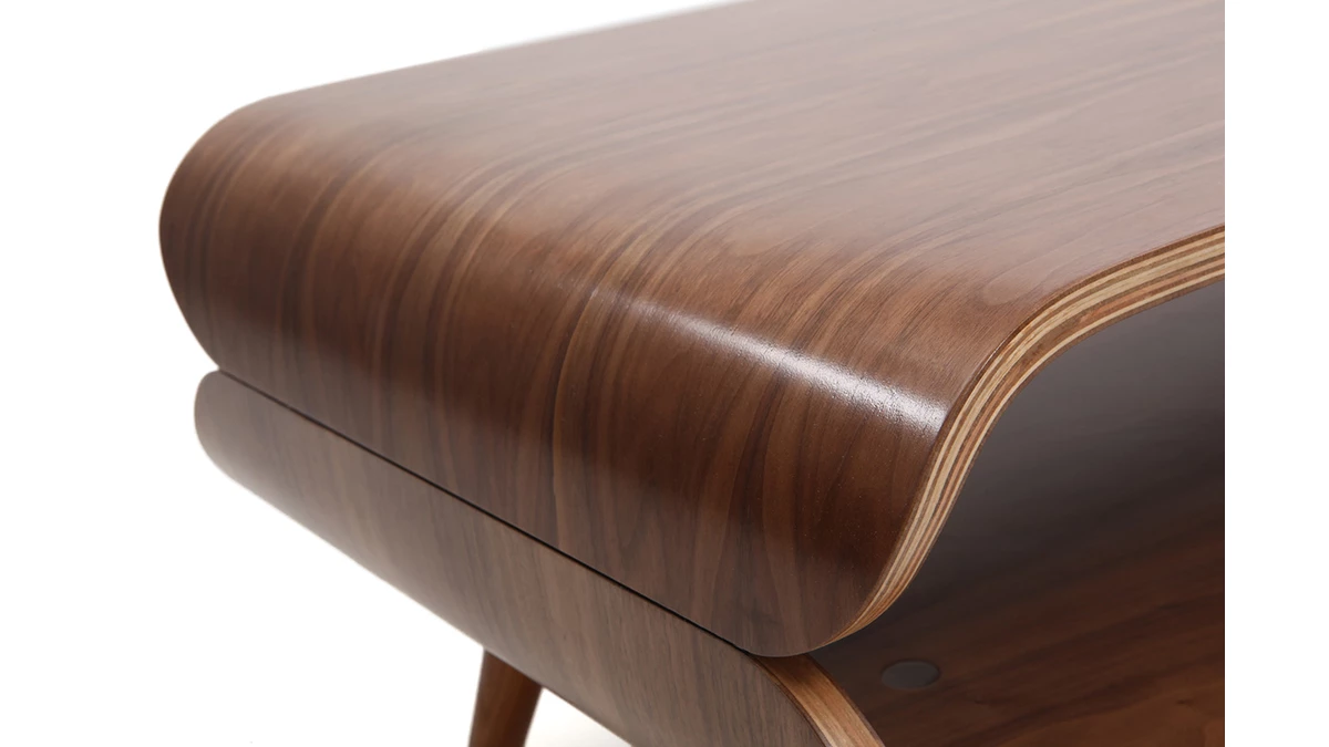 D’inspiration rétro, son design tout en rondeur et sa couleur bois foncé dû à son placage noyer apporteront une touche d’authenticité à votre salon. Idéale pour donner du cachet à votre décoration d’intérieur, cette table basse en bois se révèle également être une pièce ultra pratique au quotidien. Elle bénéficie d’un espace de rangement astucieux : une grande niche pouvant accueillir des livres, des magazines ou de petits objets qui deviendront une décoration à part entière.