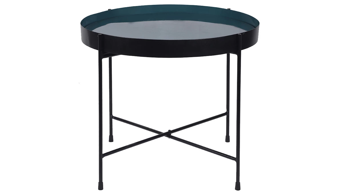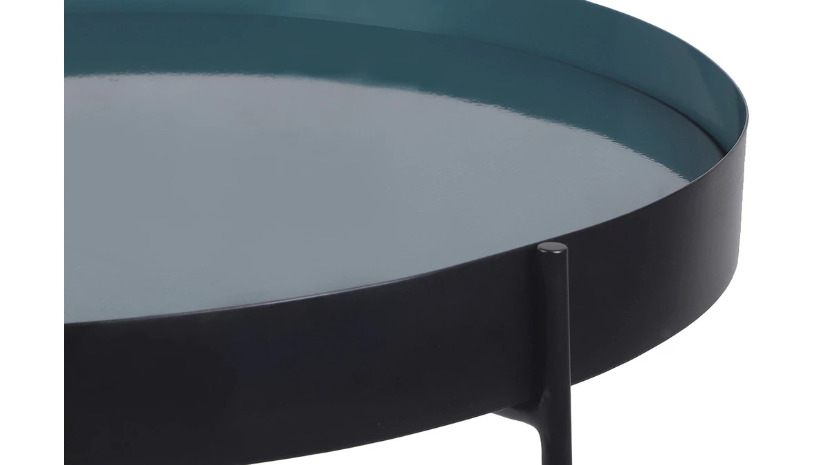 Cette table basse en métal possède un plateau amovible permettant de changer la couleur de la table en un tour de main. Bleu canard ou noir, à vous de choisir ! Cet astucieux système est une solution rapide et économique lorsqu’on veut assortir de nouvelles pièces de décoration au mobilier existant. Et qui dit amovible dit transportable. Ainsi grâce à son grand plateau, vous pourrez amener votre café à déguster près de votre canapé. SATEEN est une table basse qui s’adapte à toutes les situations.