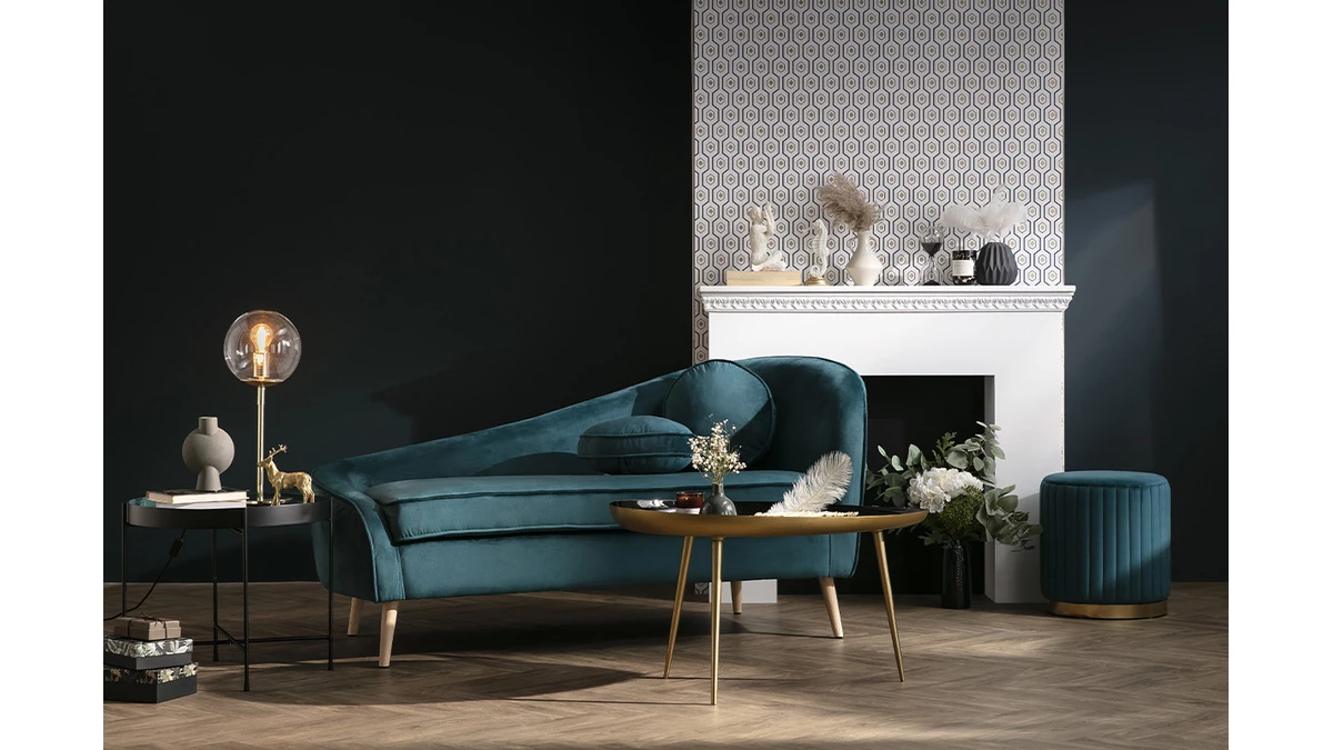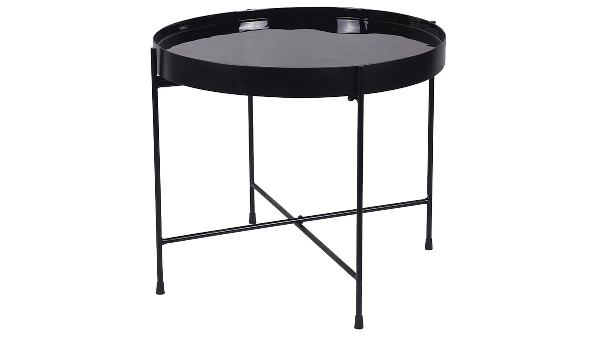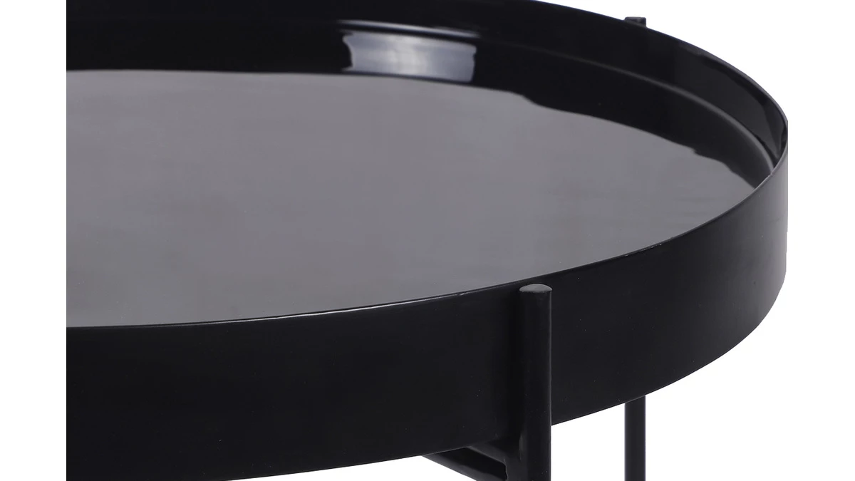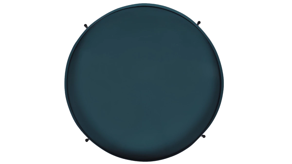 Cette table ronde est équipée d’un plateau laqué brillant couleur bleu canard/noir et d’une structure en acier noir mat. Que l’on opte pour l’esprit raffiné des couleurs sombres ou l’élégance intemporelle du monochrome noir, on profite toujours d’une belle surface (51 cm de diamètre) pour accueillir les affaires du salon.