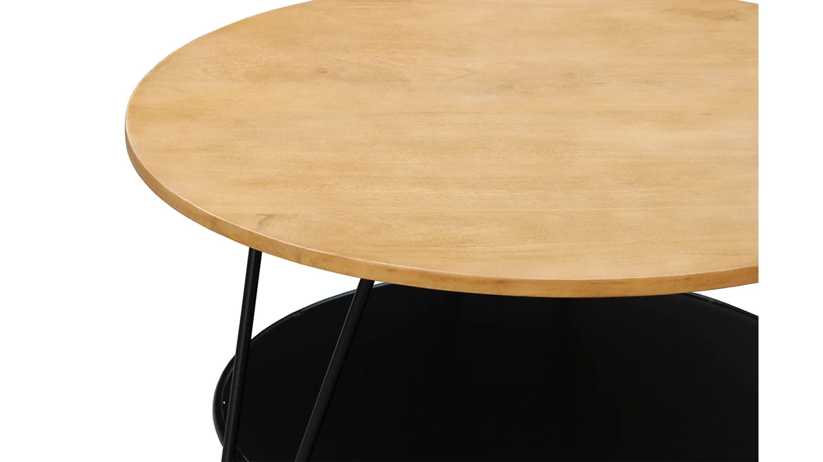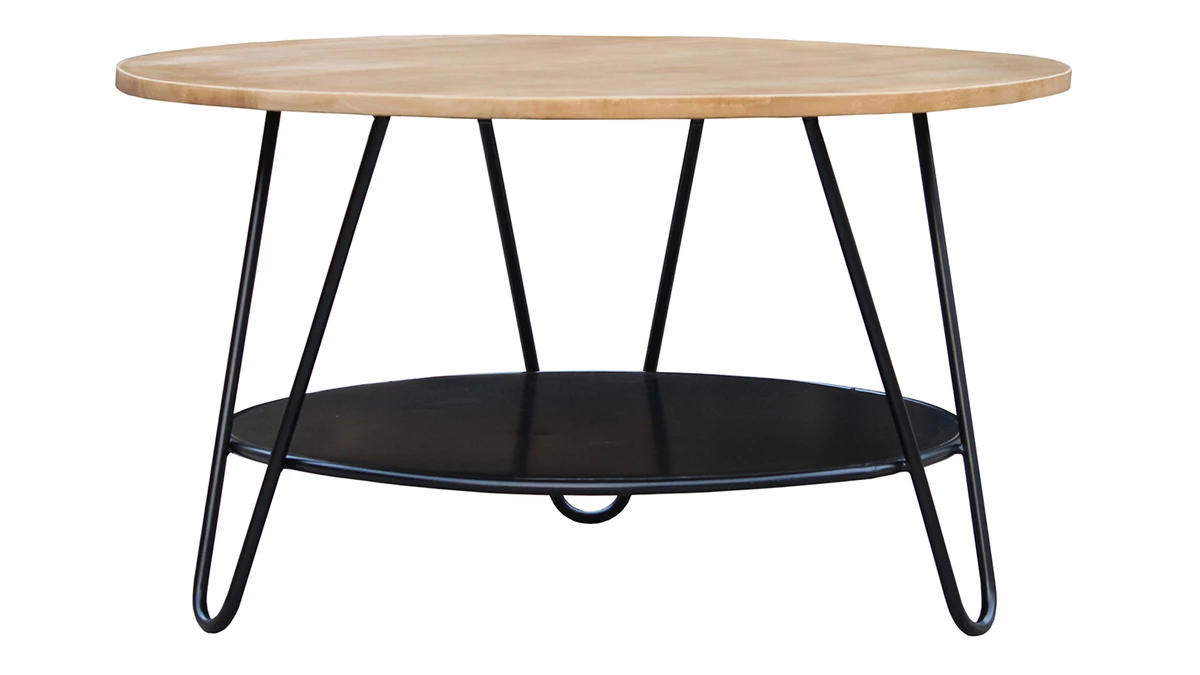 Pièce maîtresse d’un séjour, cette table basse ronde se veut aussi conviviale pour vos moments de partage entre amis que cosy pour une ambiance intimiste en famille. Le large plateau (L80 x L80 cm) en bois massif, robuste et facile d’entretien, est soutenu par un solide piètement en métal. Autre caractéristique appréciable et très pratique : la tablette inférieure qui vous permettra de ranger magazines et petits objets du quotidien.