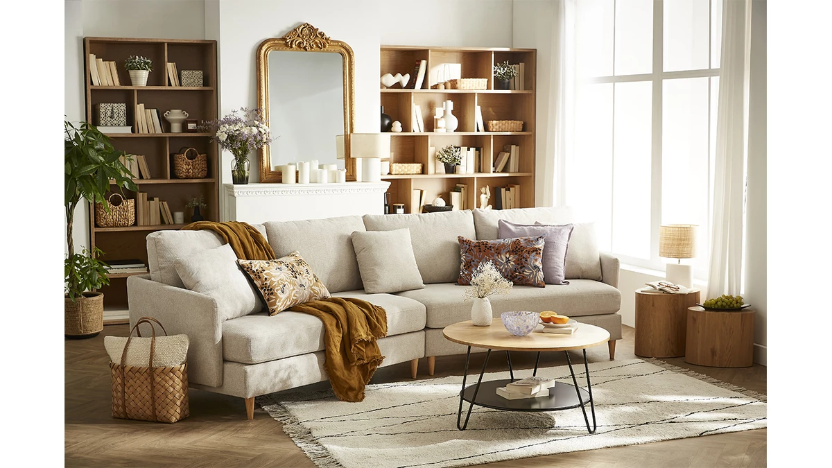 Instaurez une ambiance chaleureuse et cocooning dans votre pièce de vie : un plateau, des bougies, une plante… Autant d’accessoires qui agrémenteront votre table basse en bois naturel. Et pour sublimer PRIYA : rien de mieux qu’un tapis moelleux aux teintes naturelles.