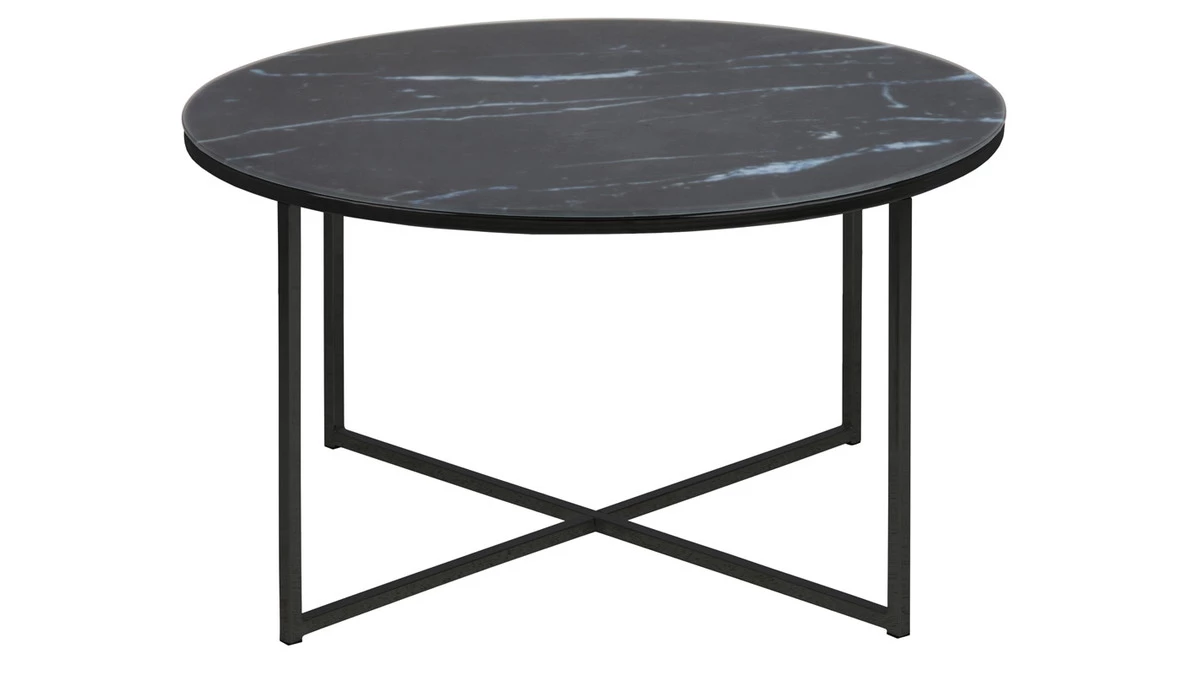 Composée d’un plateau en verre soufflé dépoli avec impression marbre noir bleuté, cette table basse design et raffinée apportera du cachet et beaucoup de personnalité à votre intérieur.
