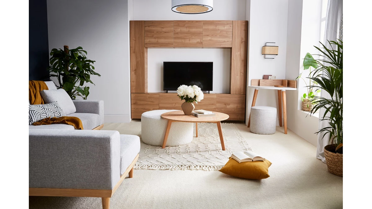 La chaleur de son bois se mariera facilement à tout type d’intérieur. Elle se mariera parfaitement à un canapé scandi-japonais comme le canapé YOKO.