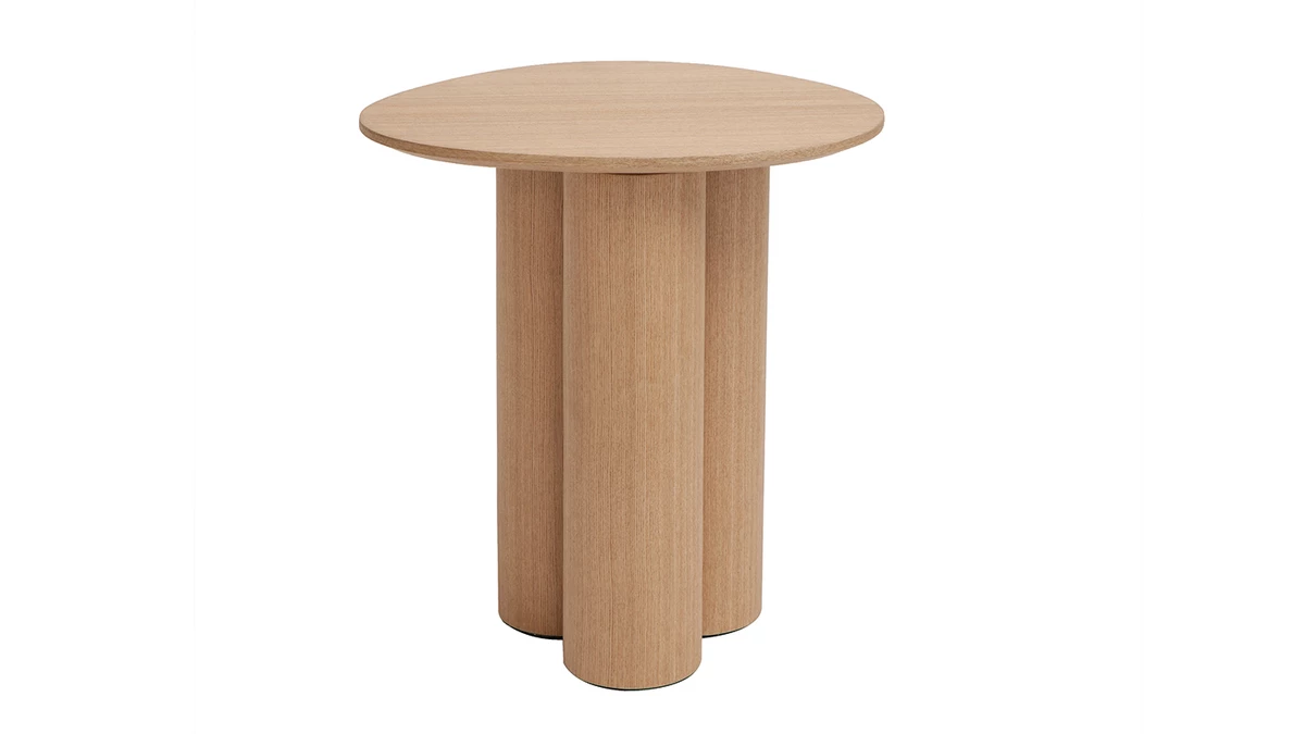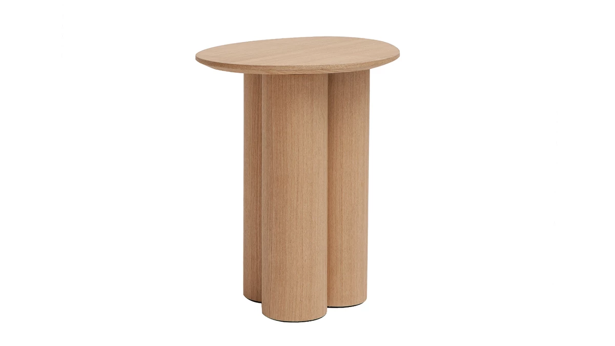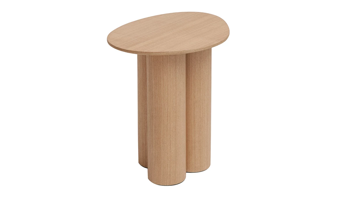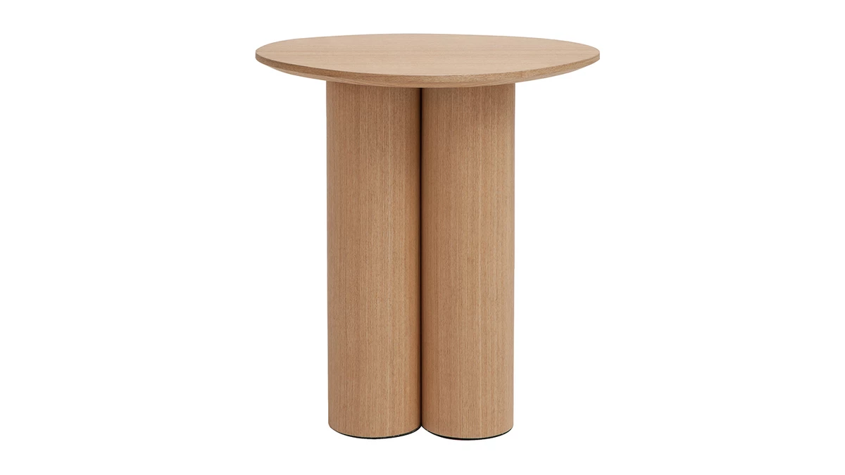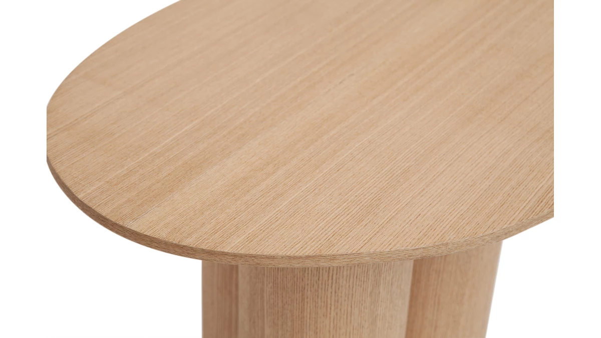 Avec ses dimensions peu encombrantes (L44.5 x P35.5 x H48.5 cm), ce mobilier original complétera avec charme la décoration de vos pièces de vie, même les plus exiguës ! Le plateau ovale tout en courbes (L45.5 x L35.5 x E1.9 cm) repose sur un piètement central, formé par trois cylindres. Un ensemble en panneaux de fibres de bois placage frêne qui fait ainsi rimer robustesse et facilité d’entretien.