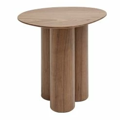 Avec ses dimensions peu encombrantes (L44.5 x P35.5 x H48.5 cm), cette table d’appoint originale complétera avec charme la décoration de vos pièces de vie, même les plus exiguës ! Le plateau ovale et tout en courbes (L45.5 x L35.5 x E1.9) repose sur un piètement central, formé par trois cylindres. Un ensemble en panneaux de fibres de bois placage noyer qui fait ainsi rimer robustesse et facilité d’entretien.