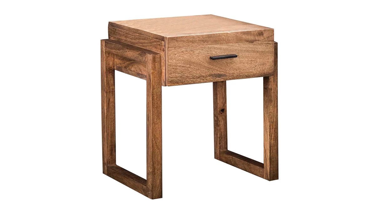 Petit chevet au look minimaliste, le modèle DALE est une pièce aussi esthétique que fonctionnelle. Il est constitué d’une structure intégralement en manguier massif, une essence de bois exotique aux nervures uniques que l’on retrouve dans les chambres de caractère. Il contraste élégamment avec un design ultra moderne. On aime particulièrement le piètement géométrique qui fait toute l’originalité de ce chevet. DALE est une table de chevet en bois au style au carré et c’est tout ce qui fait son charme.