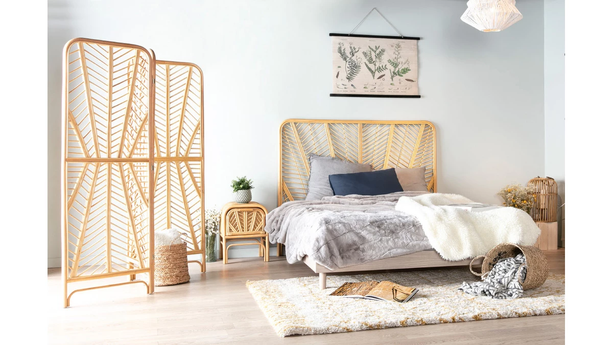 Un coin nuit dans un esprit vintage tendance, c’est ce que voulait Stéphane Plaza. Avec Mylène Podvin, designer Miliboo, ils ont dessiné la table de chevet GALON, un petit meuble en rotin dans l’air du temps !