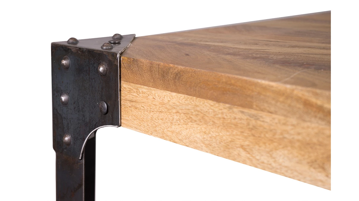 La table haute industrielle en manguier et métal MADISON existe également en format rectangulaire.