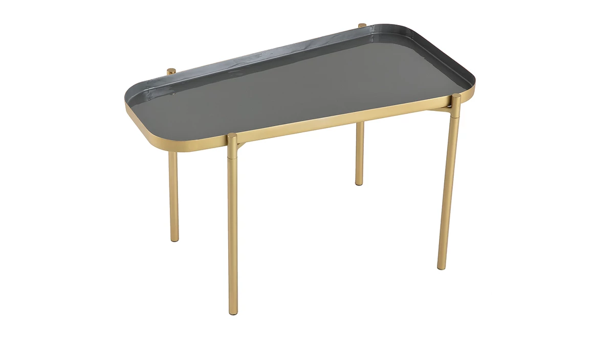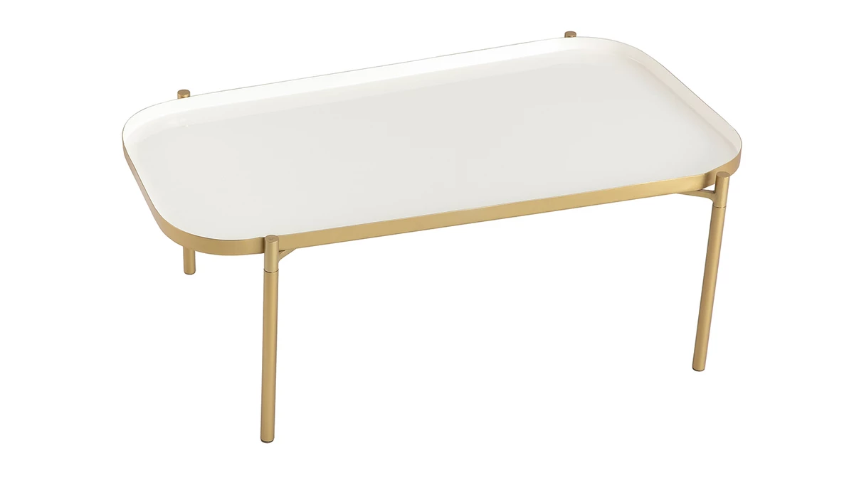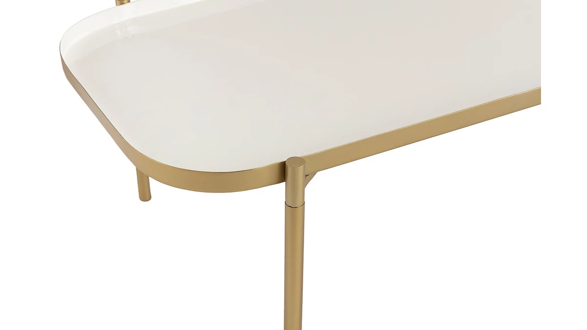 Matière : structure en acier finition laiton et plateau laqué brillant