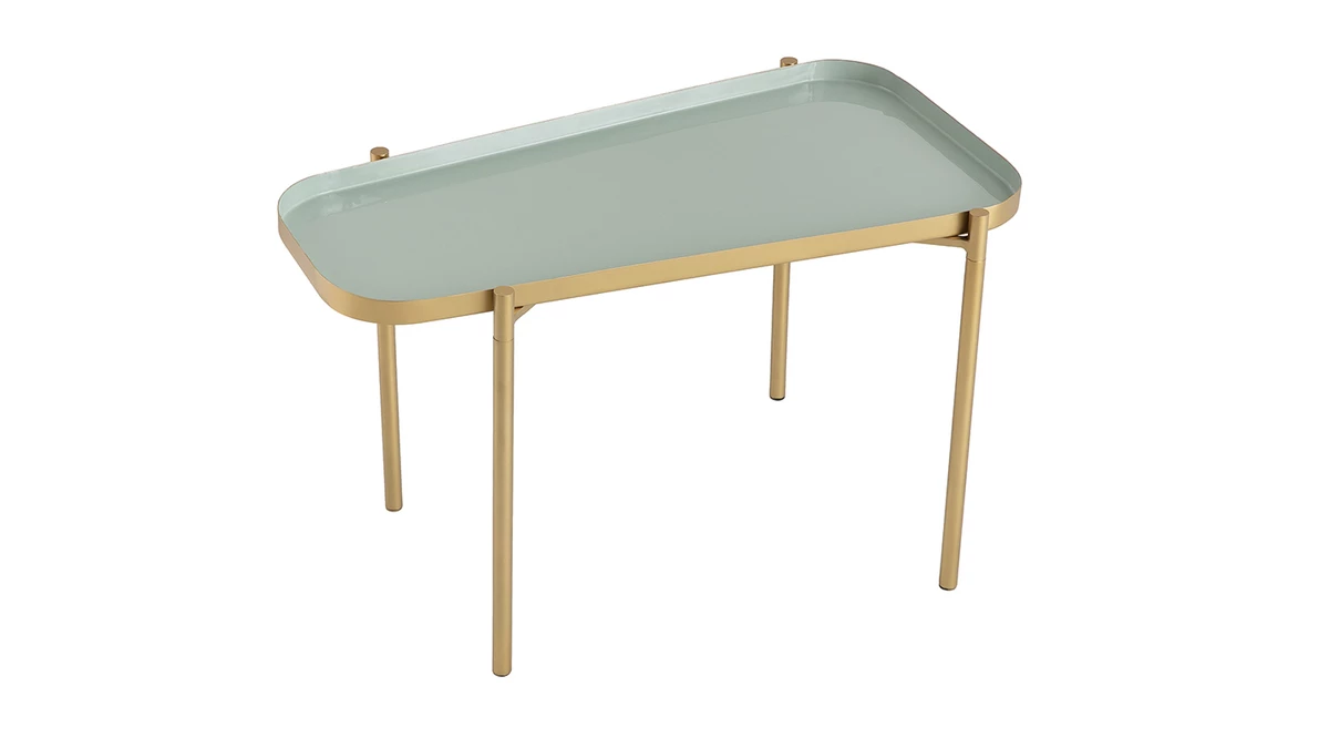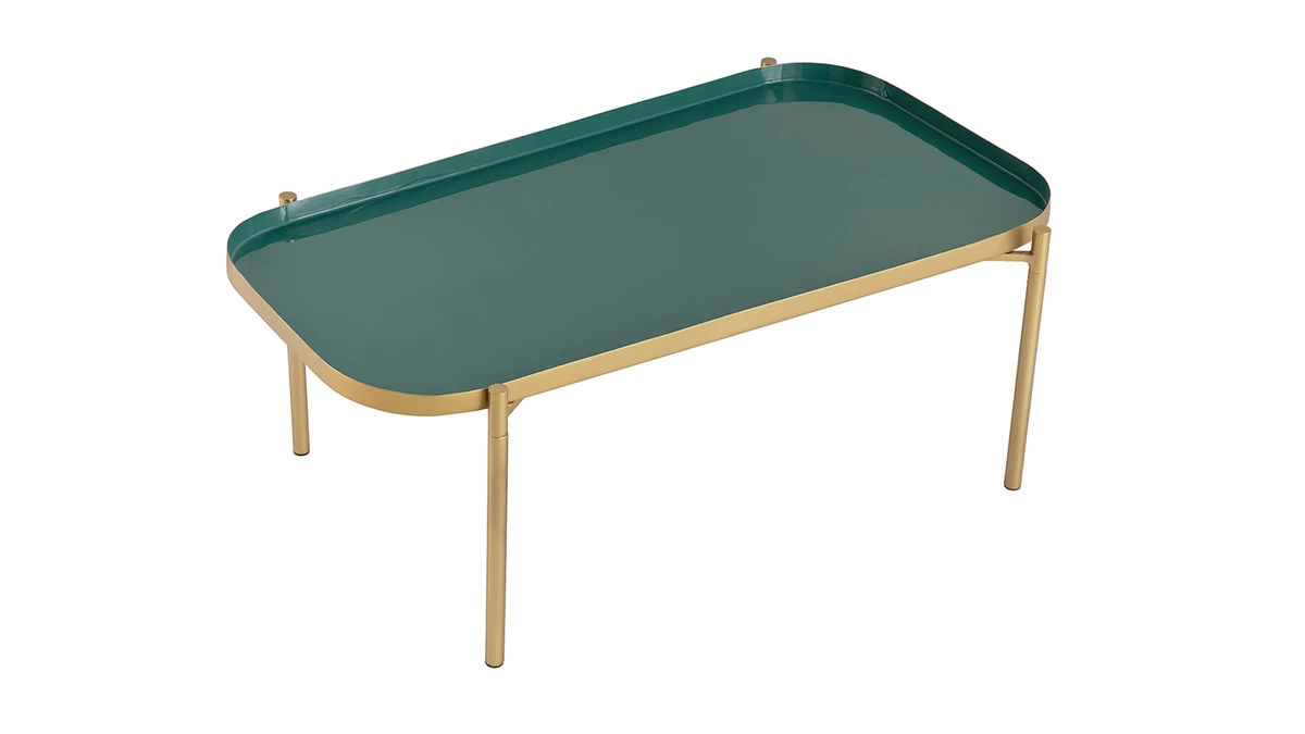 Matière : structure en acier finition laiton et plateau laqué brillant