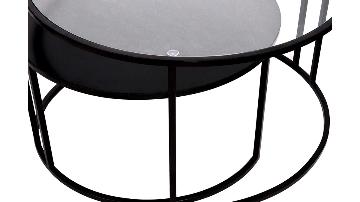 On aime le jeu de transparence offert par ce grand plateau en verre trempé de 80 cm de diamètre et son association réussie avec un second plateau en métal noir. Ces deux éléments sont complétés par un piètement en demi cercle original. Il donne aux tables rondes TAHL ce style sophistiqué et ultra moderne qui nous a fait craquer. Issue d’un savoir-faire artisanal, chacune des tables basses est sans pareil et empreinte de sa propre histoire.