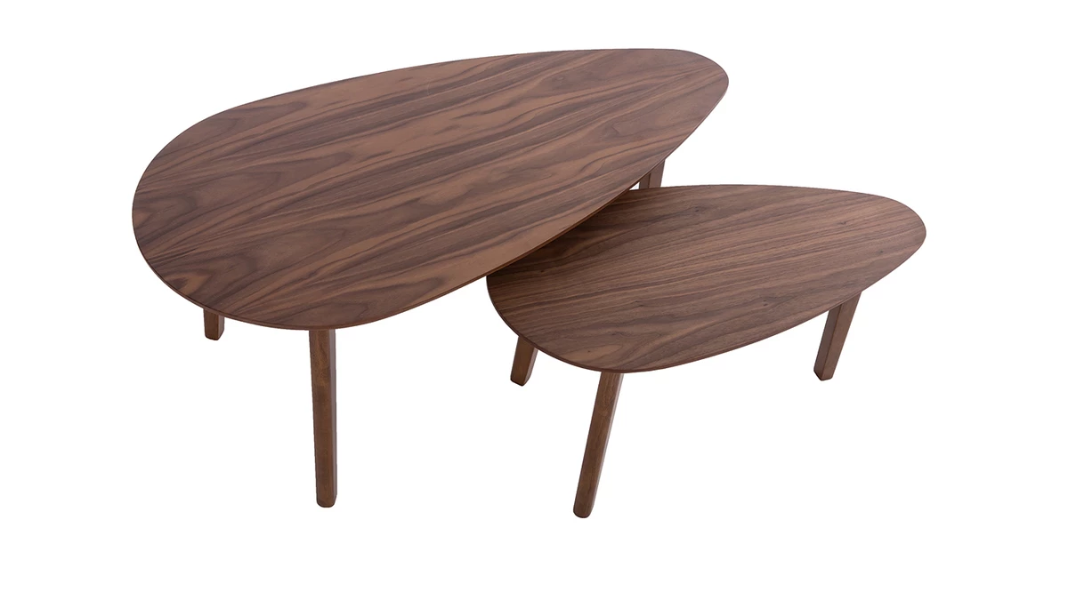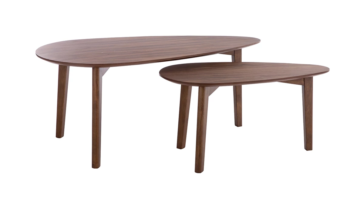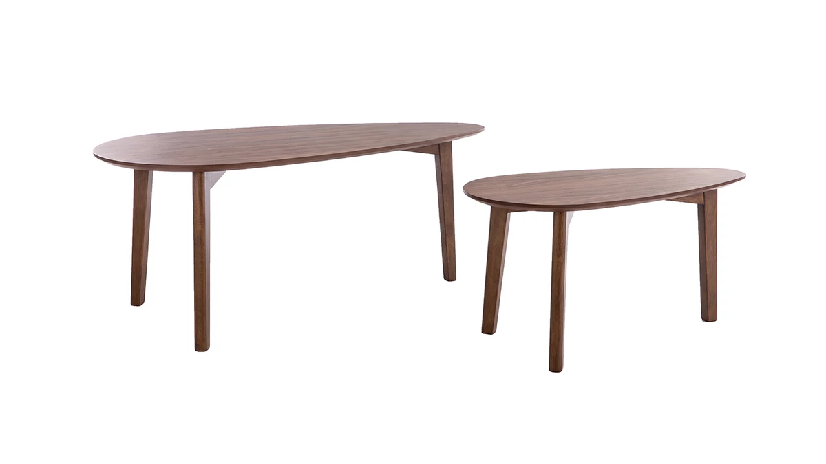 Les tables basses ARTIK allient un joli plateau ovale plaqué noyer à un piètement tripode en hévéa massif. On aime particulièrement la douceur de leurs lignes et leur design qui traverse les époques et les styles.