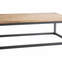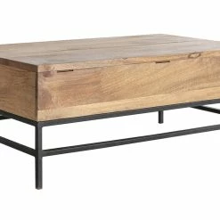 Table Basse Relevable Industrielle Bois Clair Manguier Massif Et Métal Noir L110 Cm YPSTER