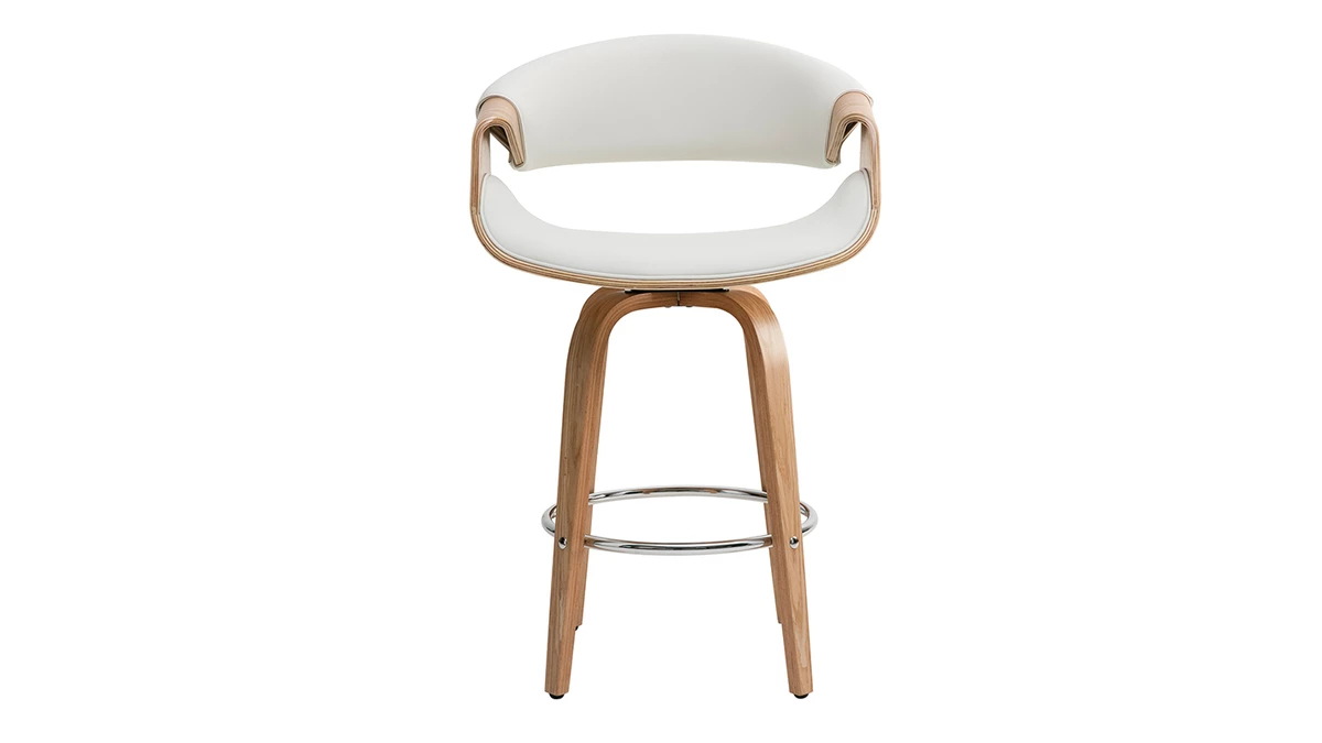 Son design original associe avec brio les matériaux et les tons chers au style nordique avec les codes du contemporain. L’association du bois clair et du polyuréthane blanc apporteront chaleur et clarté à votre espace repas. Le cercle métallique en acier chromé servant de repose-pied est la touche moderne qui fait le petit plus de cette chaise haute.
