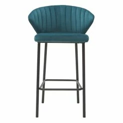 Cette chaise haute associe avec finesse un esprit classique, représenté par un dossier avec surpiqûres et un beau revêtement en en tissu velours gaufré, à un design moderne aérien. Cette combinaison de styles et de matériaux fait de ce tabouret de bar un élément particulièrement élégant et raffiné.